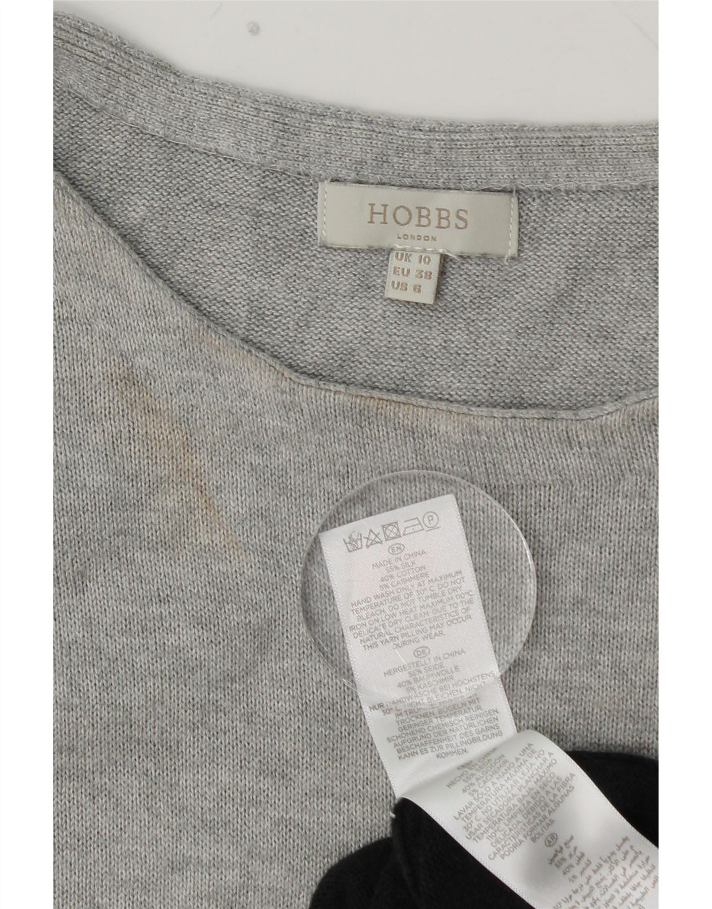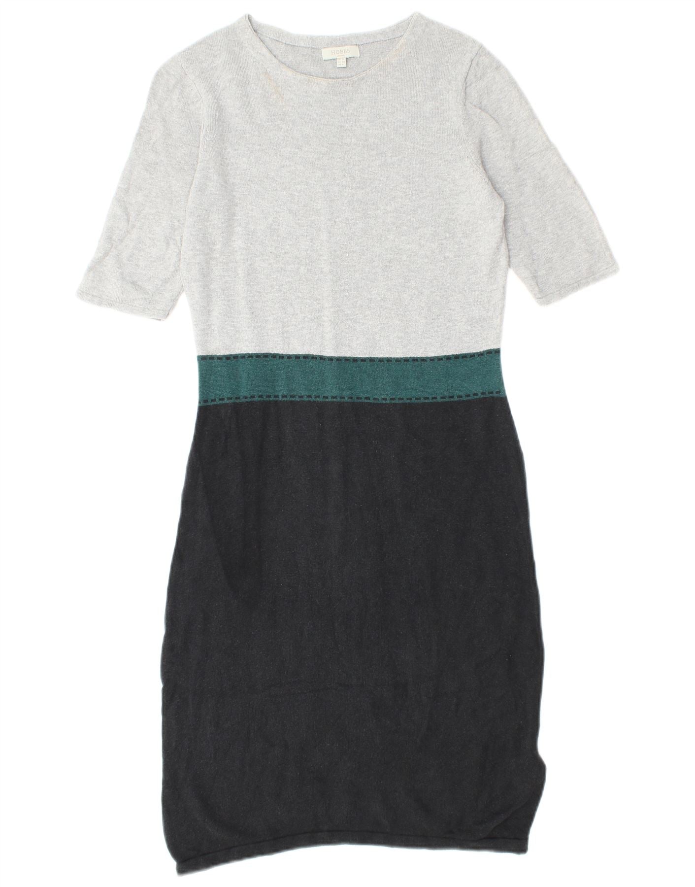 Damska sukienka sweterkowa HOBBS z krótkim rękawem UK 10, mała, szara, z blokami kolorów, jedwabna
