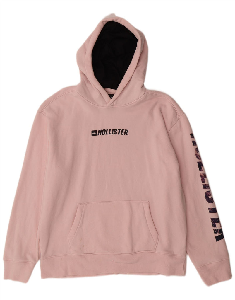 Męski sweter z kapturem i grafiką HOLLISTER XL, różowy, bawełniany