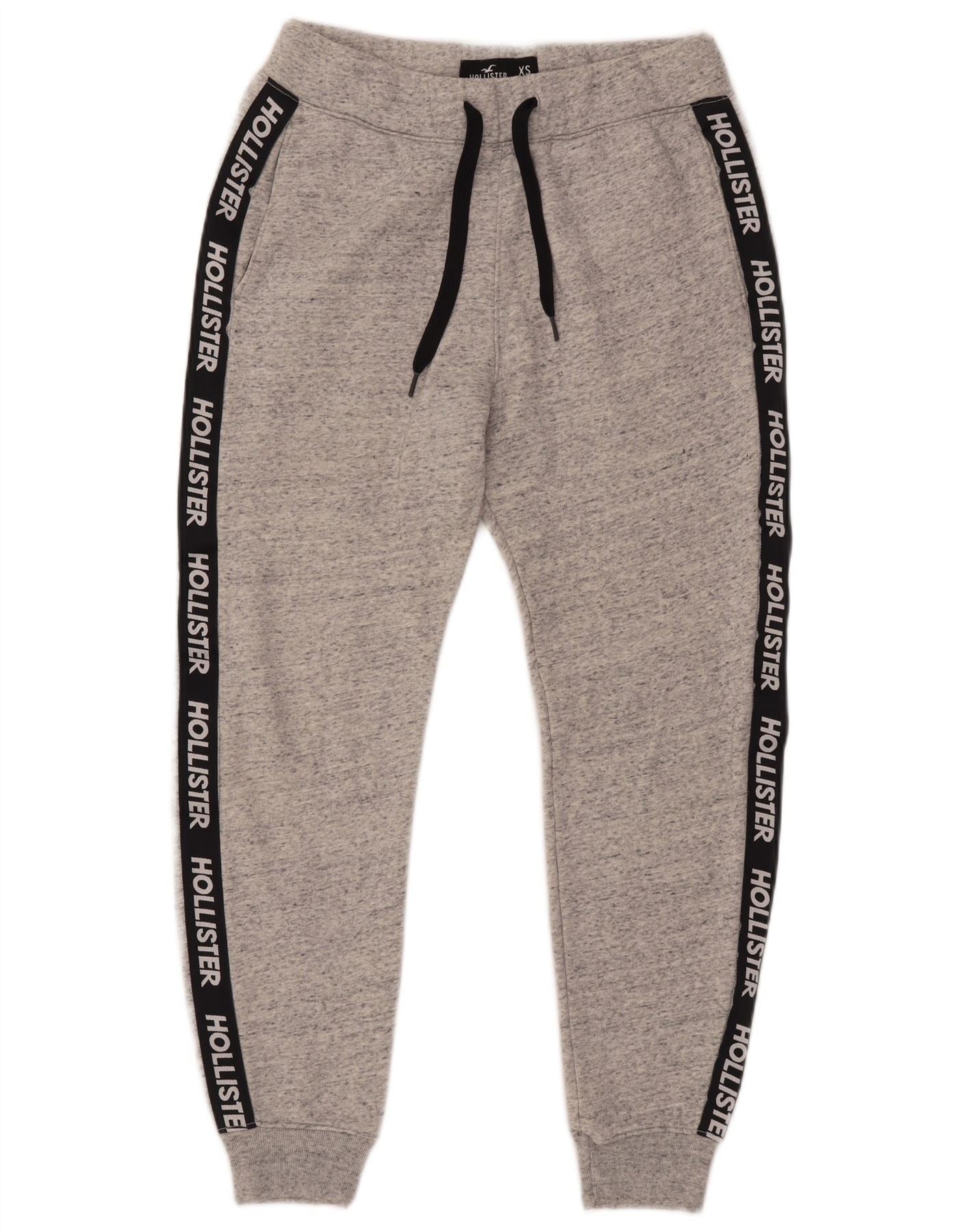 Męskie spodnie dresowe HOLLISTER z grafiką, joggery XS, szara bawełna w plamki