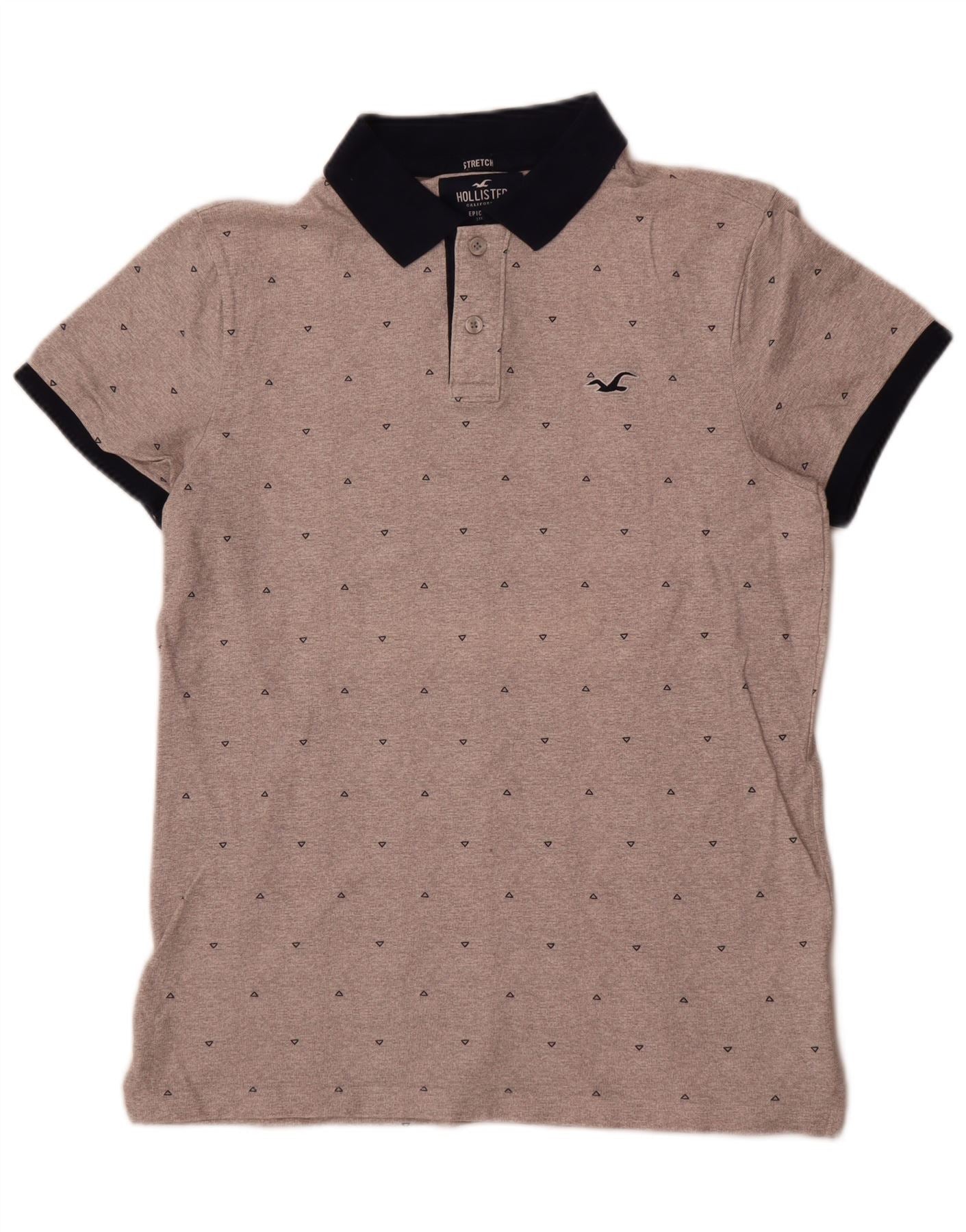Męska koszulka polo Hollister ze stretchem, średnia szara, geometryczna bawełna