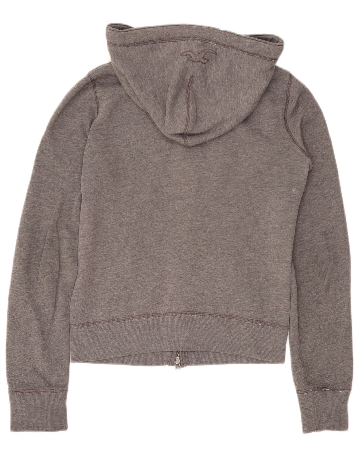 Damski sweter HOLLISTER z grafiką i zamkiem błyskawicznym UK 10, mały, szary, bawełniany