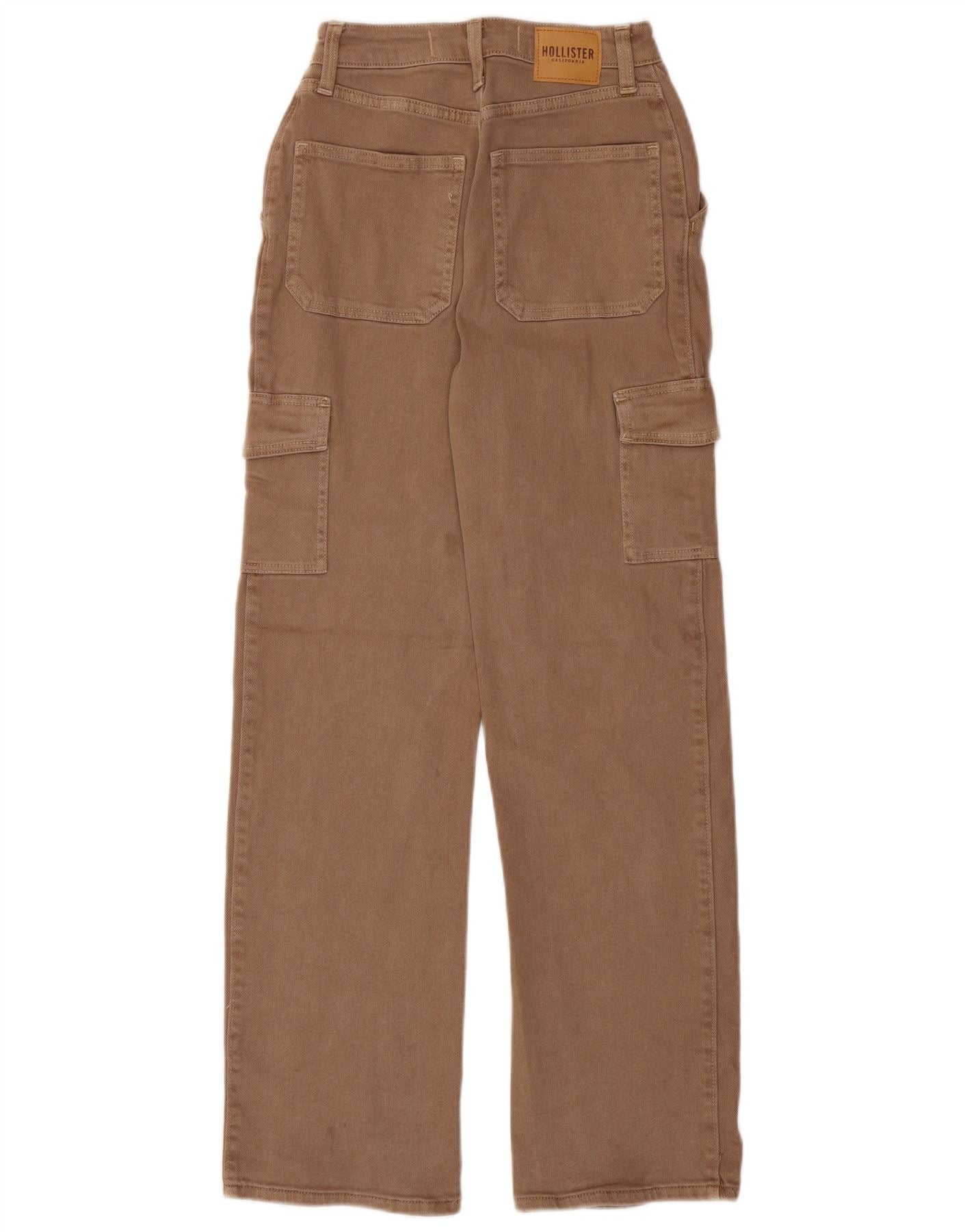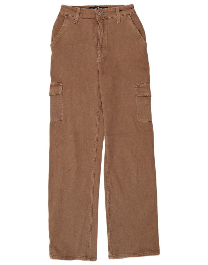 HOLLISTER Womens High Waist Straight Cargo Trousers W23 L30 Brown Cotton