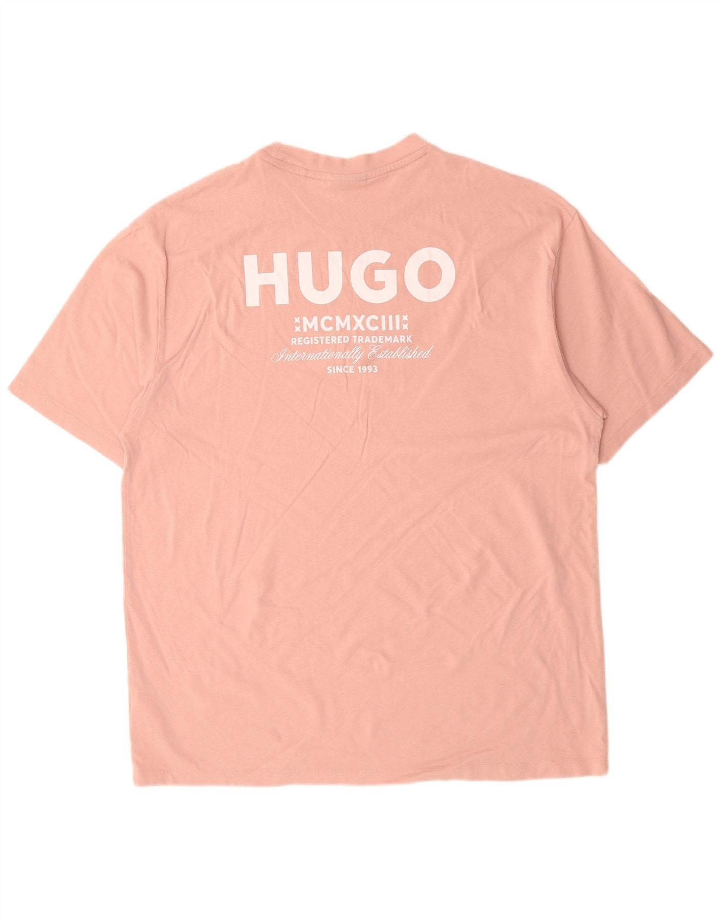 Męska koszulka z grafiką HUGO BOSS, góra XL, różowa bawełna