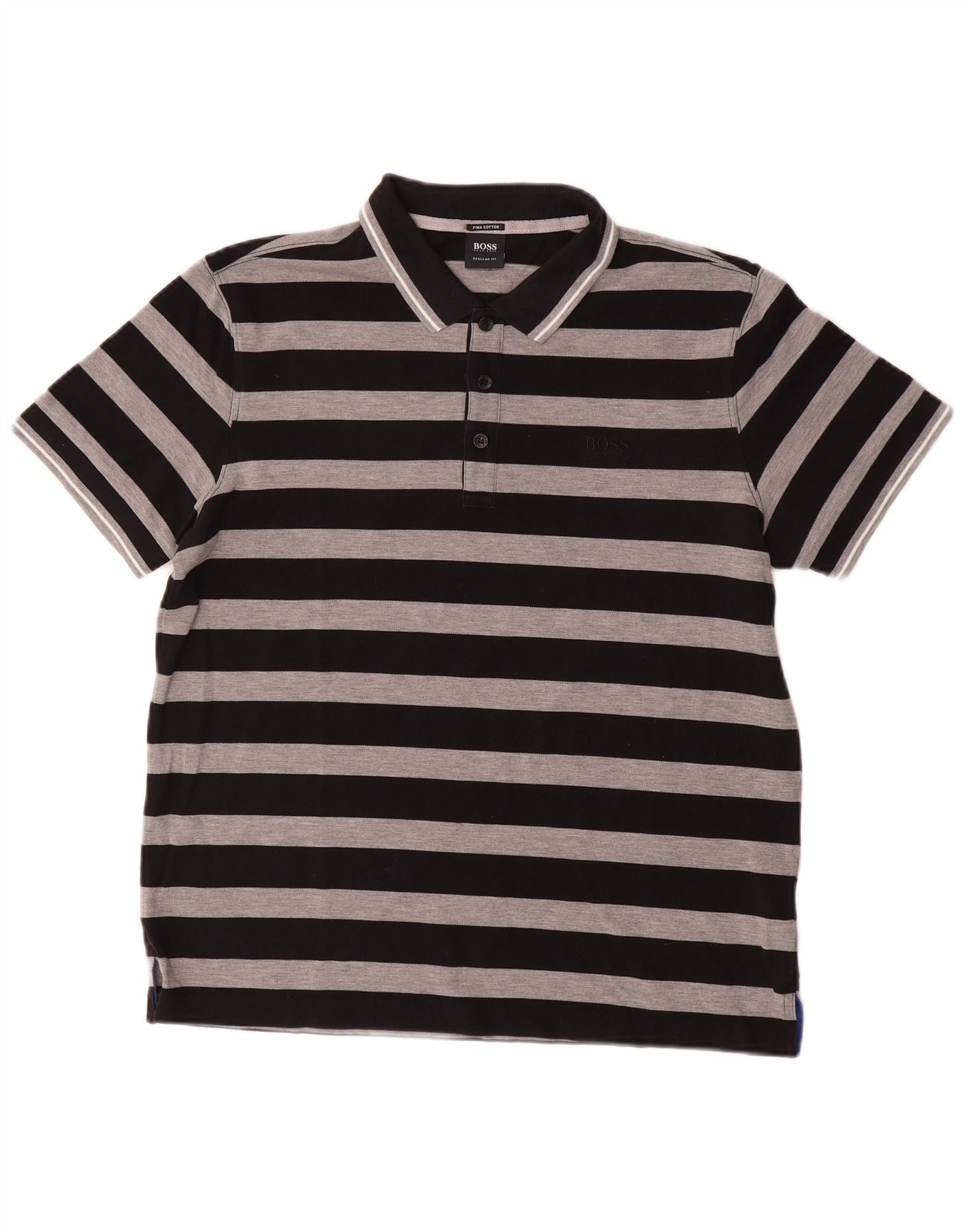 Męska koszulka polo Hugo Boss o regularnym kroju, duża, czarna, bawełniana w paski