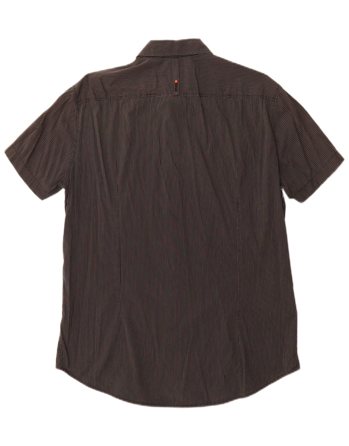 Męska koszula z krótkim rękawem HUGO BOSS, duża, szara, bawełniana w prążki