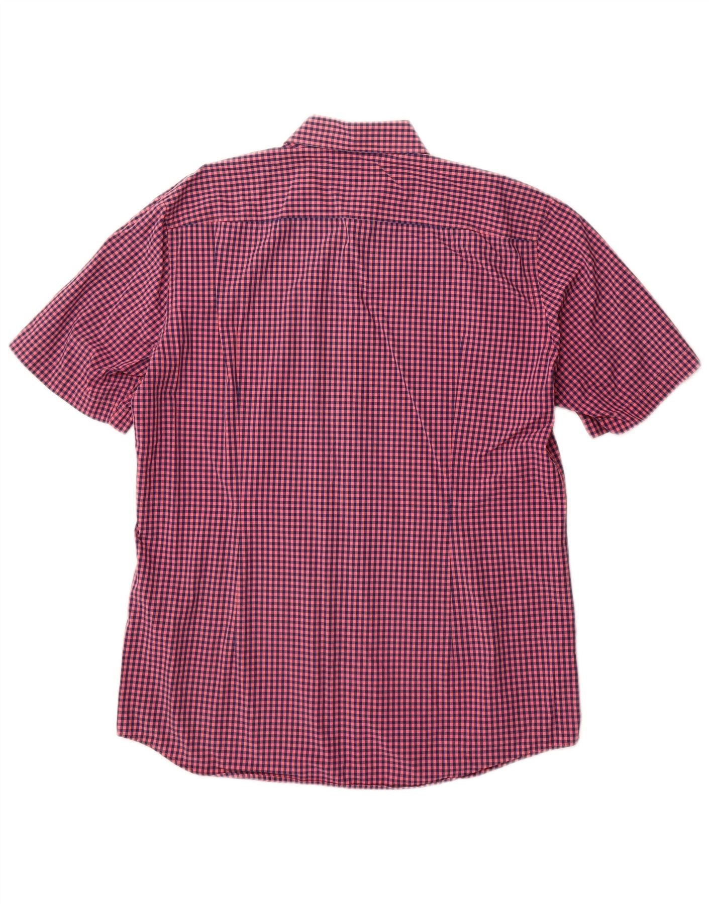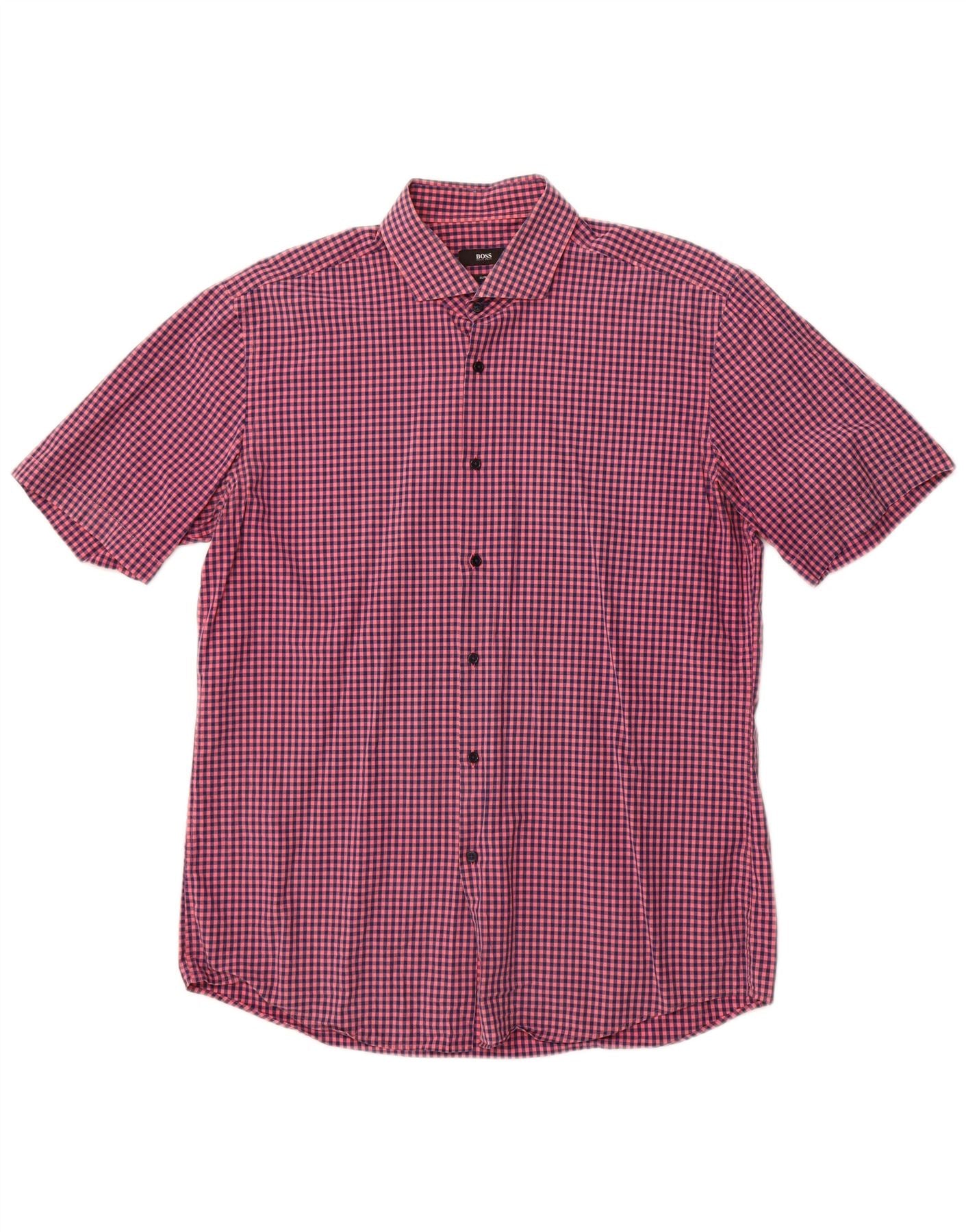 Męska koszula slim fit z krótkim rękawem Hugo Boss, duża, różowa kratka