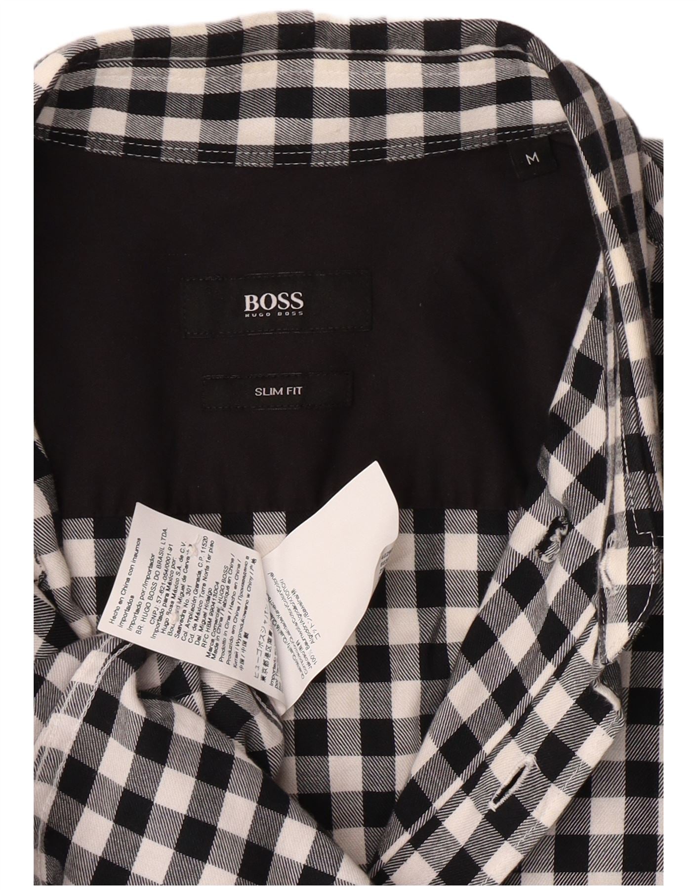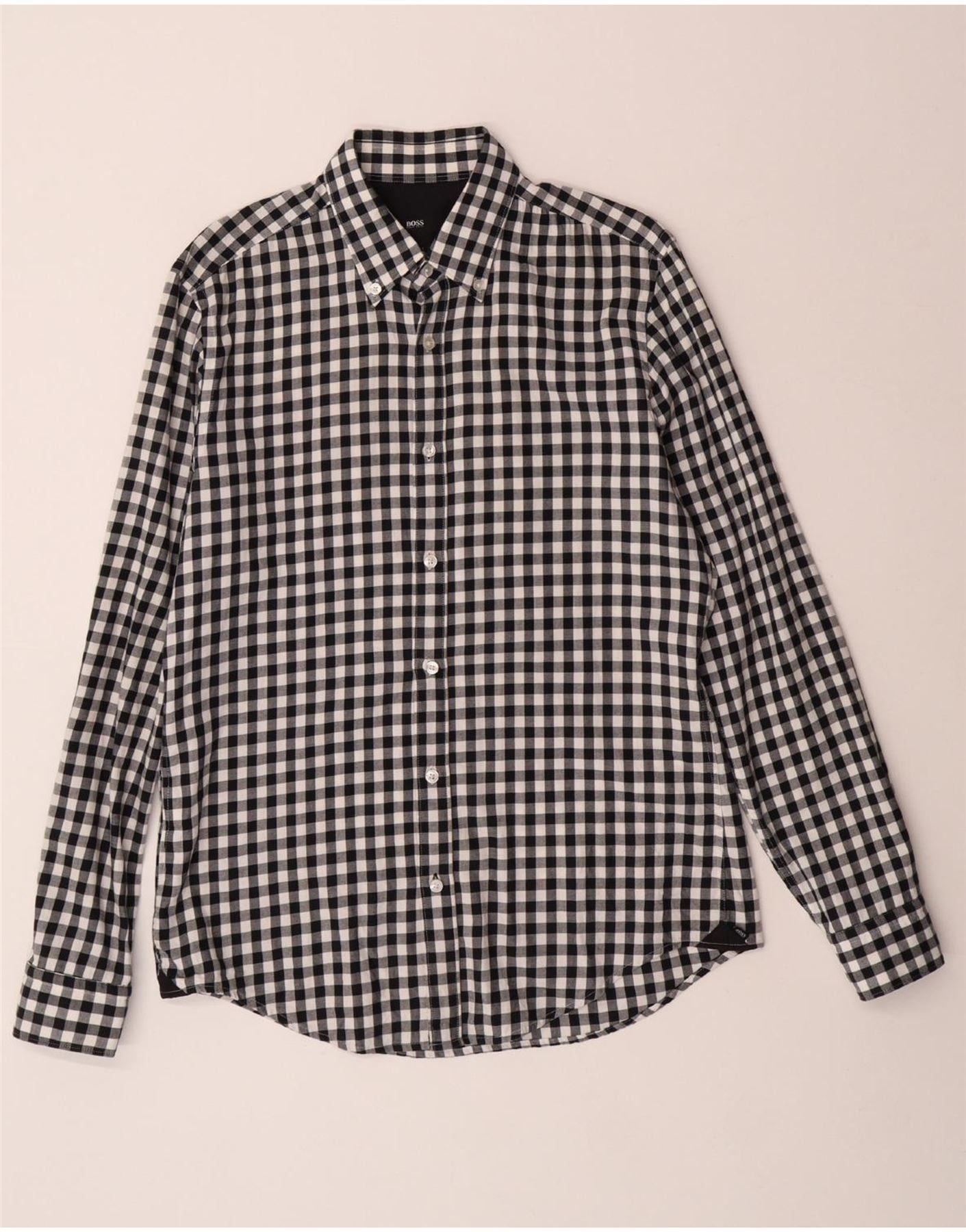 Męska koszula flanelowa HUGO BOSS Slim Fit, średnia czarna bawełniana kratka