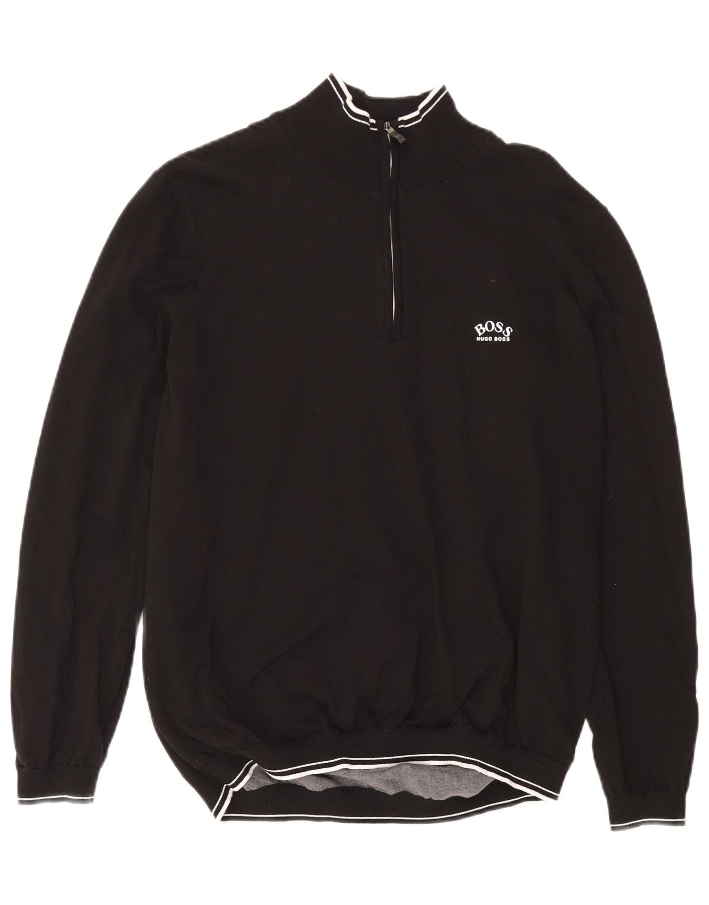 Męski sweter zapinany na zamek Hugo Boss 2XL, czarny, bawełniany