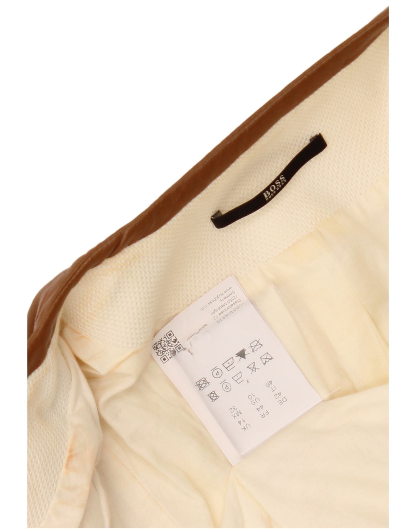 HUGO BOSS Womens Blazer Jacket UK 14 Large Off White Colourblock Cotton