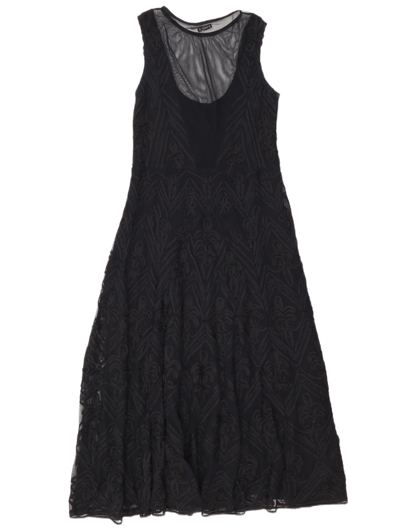 HUNZA damska sukienka maxi bez rękawów UK 18 XL czarna wiskoza Paisley