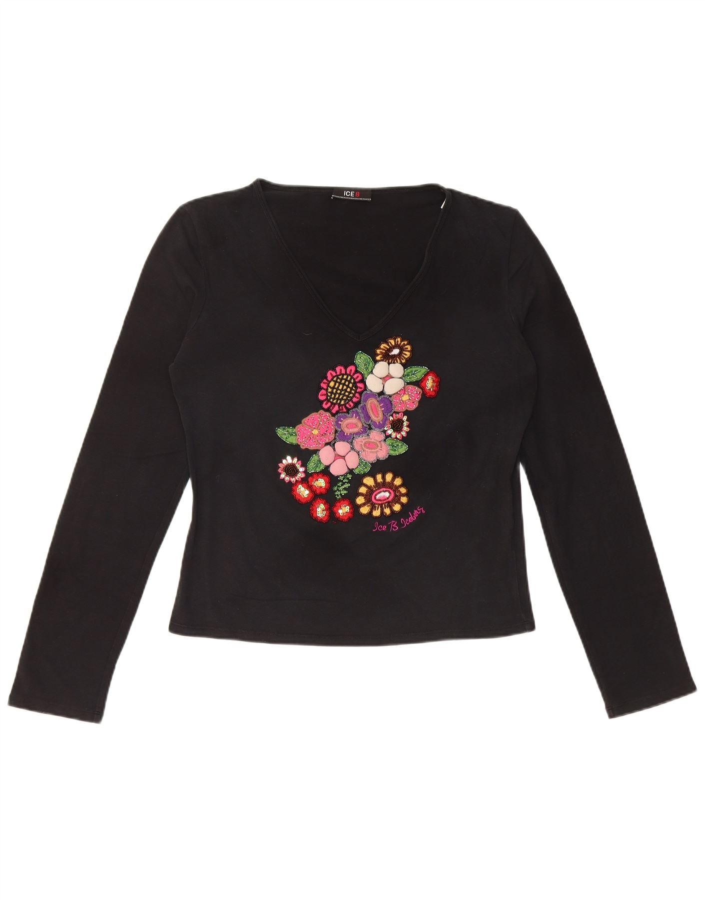 Damski krótki top ICEBERG z grafiką, długim rękawem IT 46, duży, czarny w kwiaty