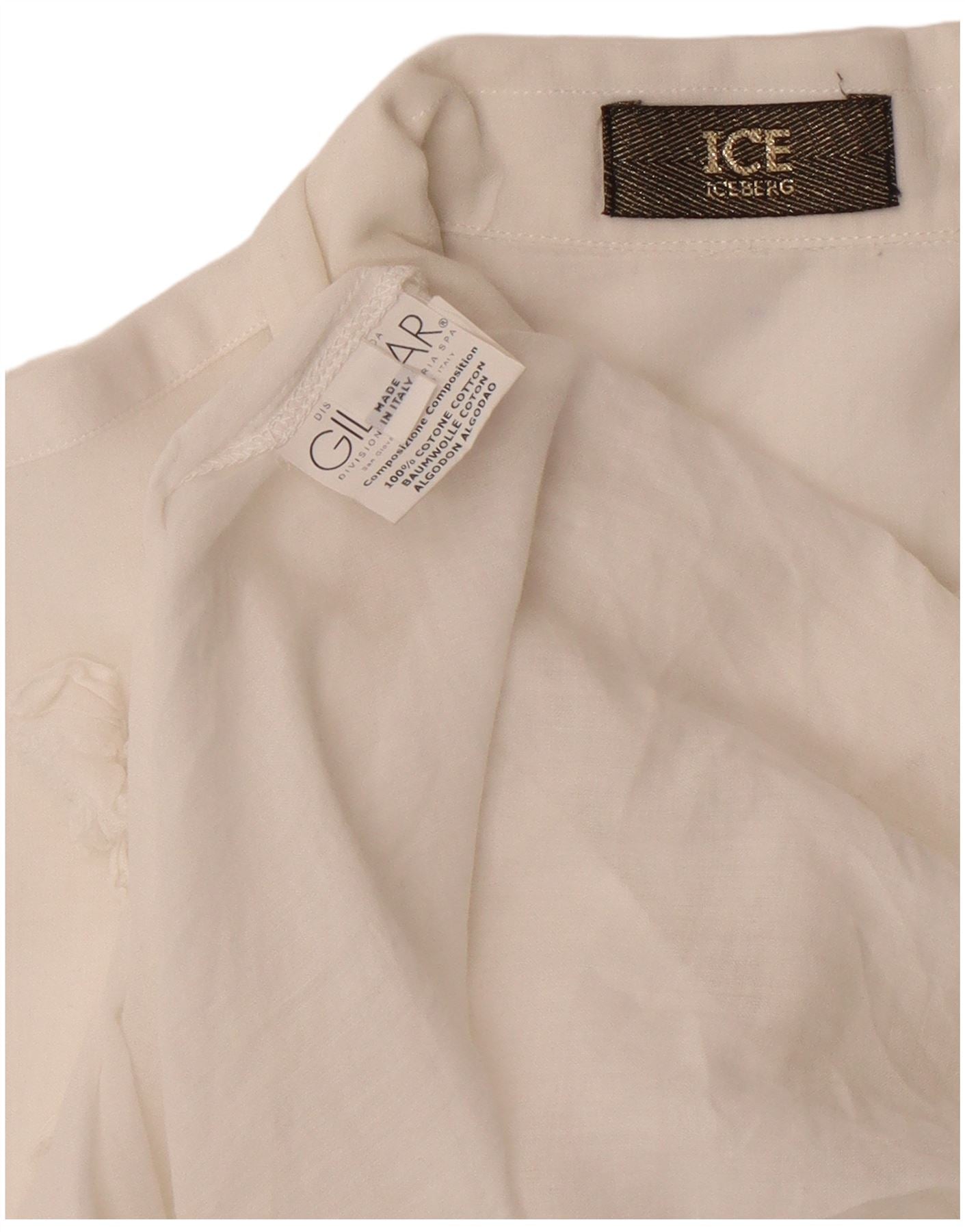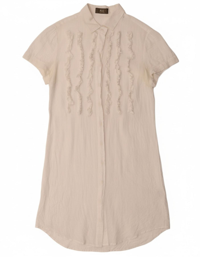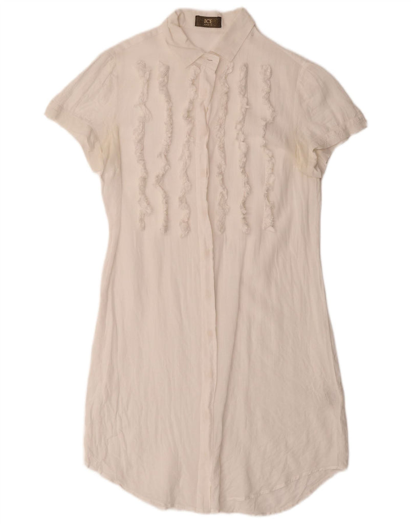 ICEBERG Womens Ruffle Front Short Sleeves Shirt Dress UK 12 Medium White