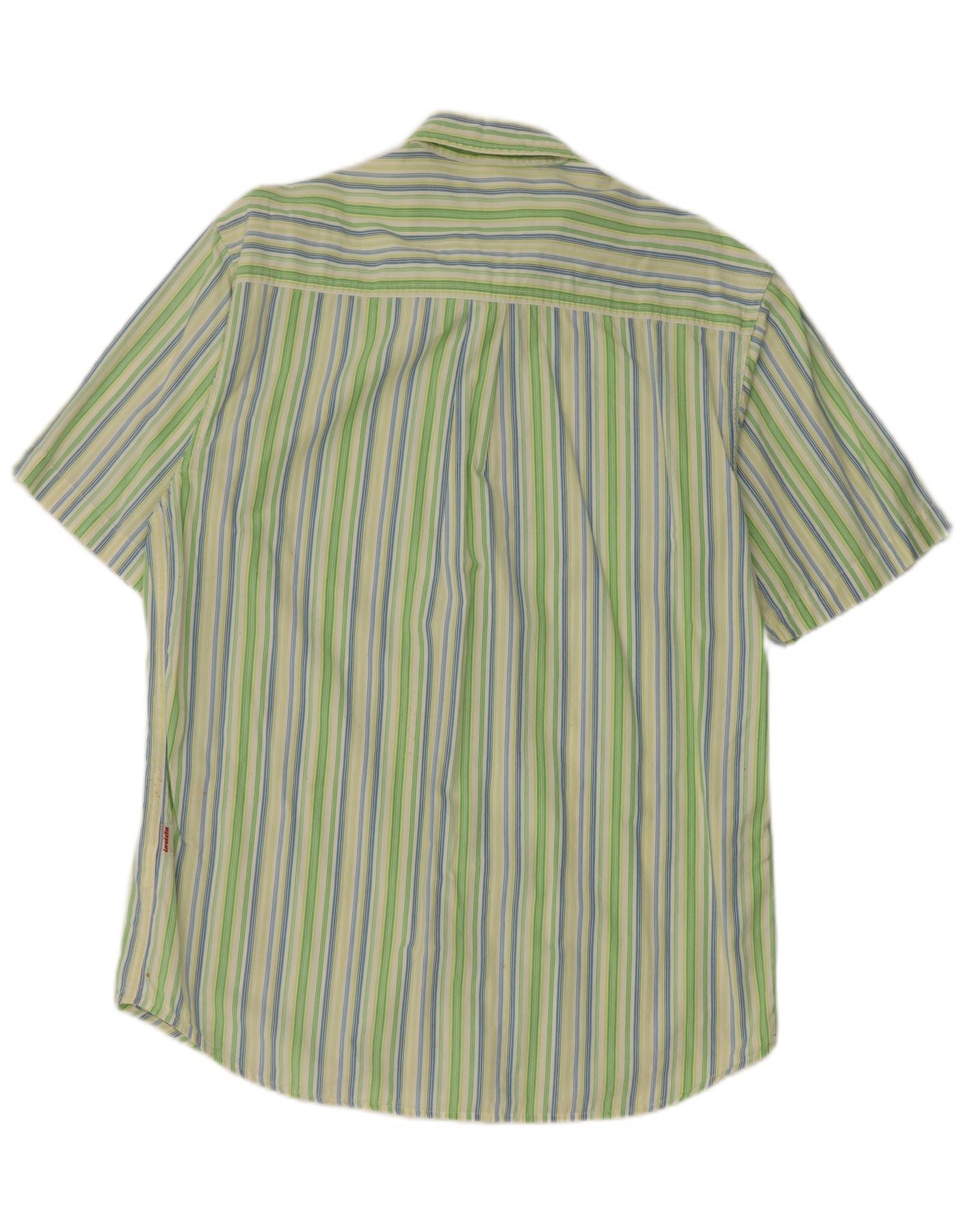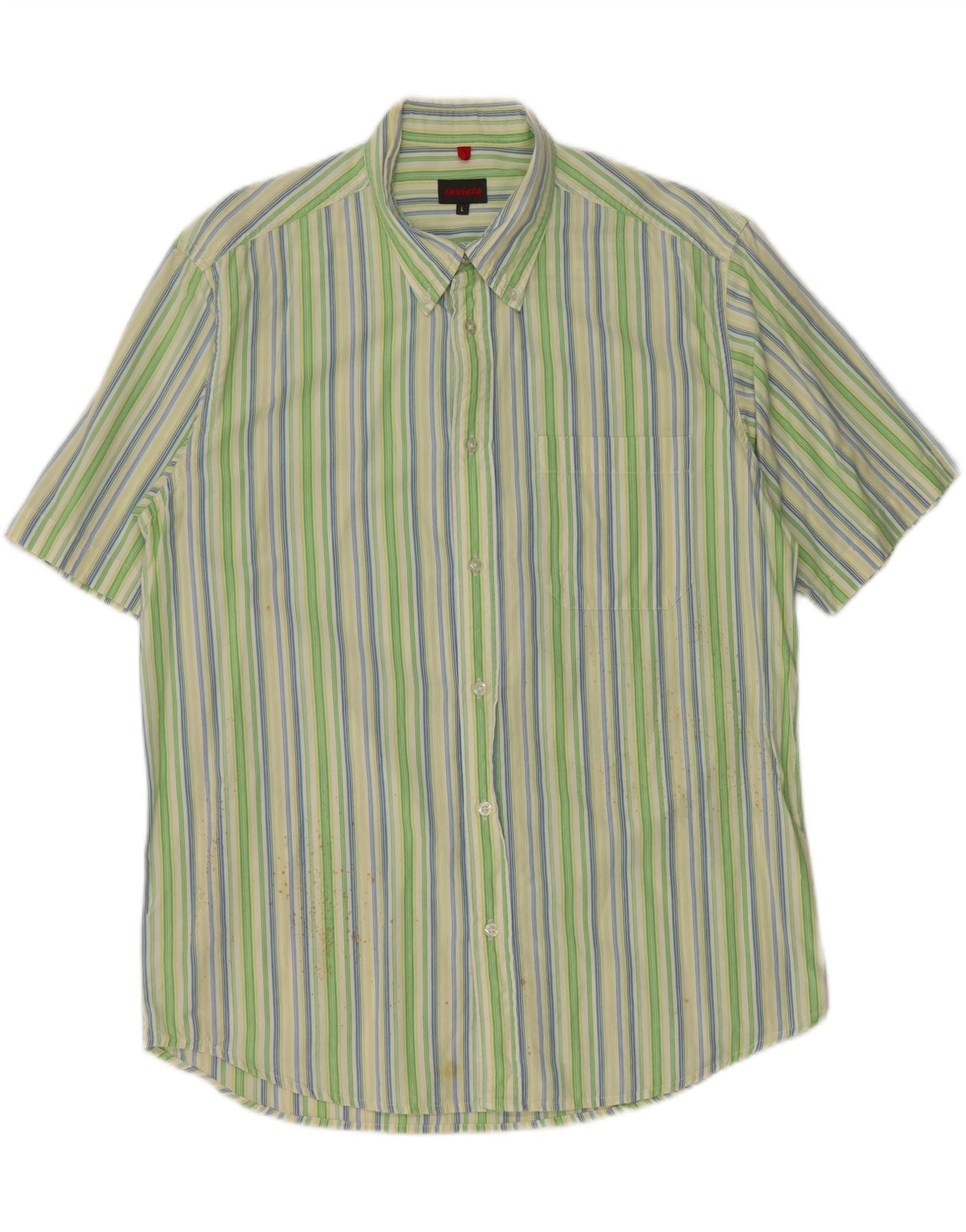 BLAUER Mens Military Short Sleeve Shirt Large Blue Pinstripe Cotton