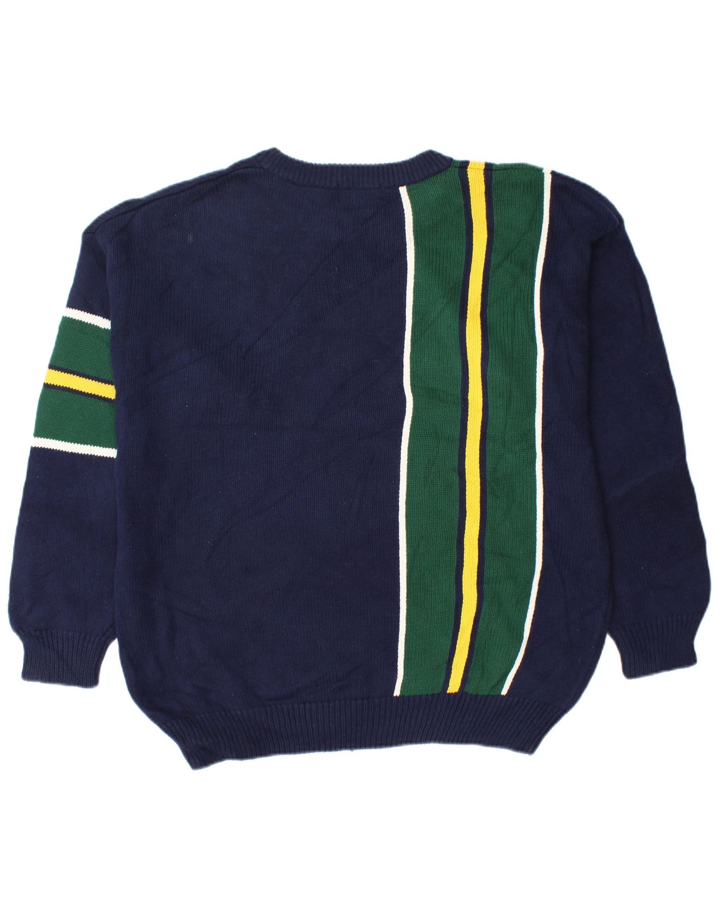 IZOD Męski sweter z okrągłym dekoltem, duży, granatowy, bawełniany w bloki kolorów