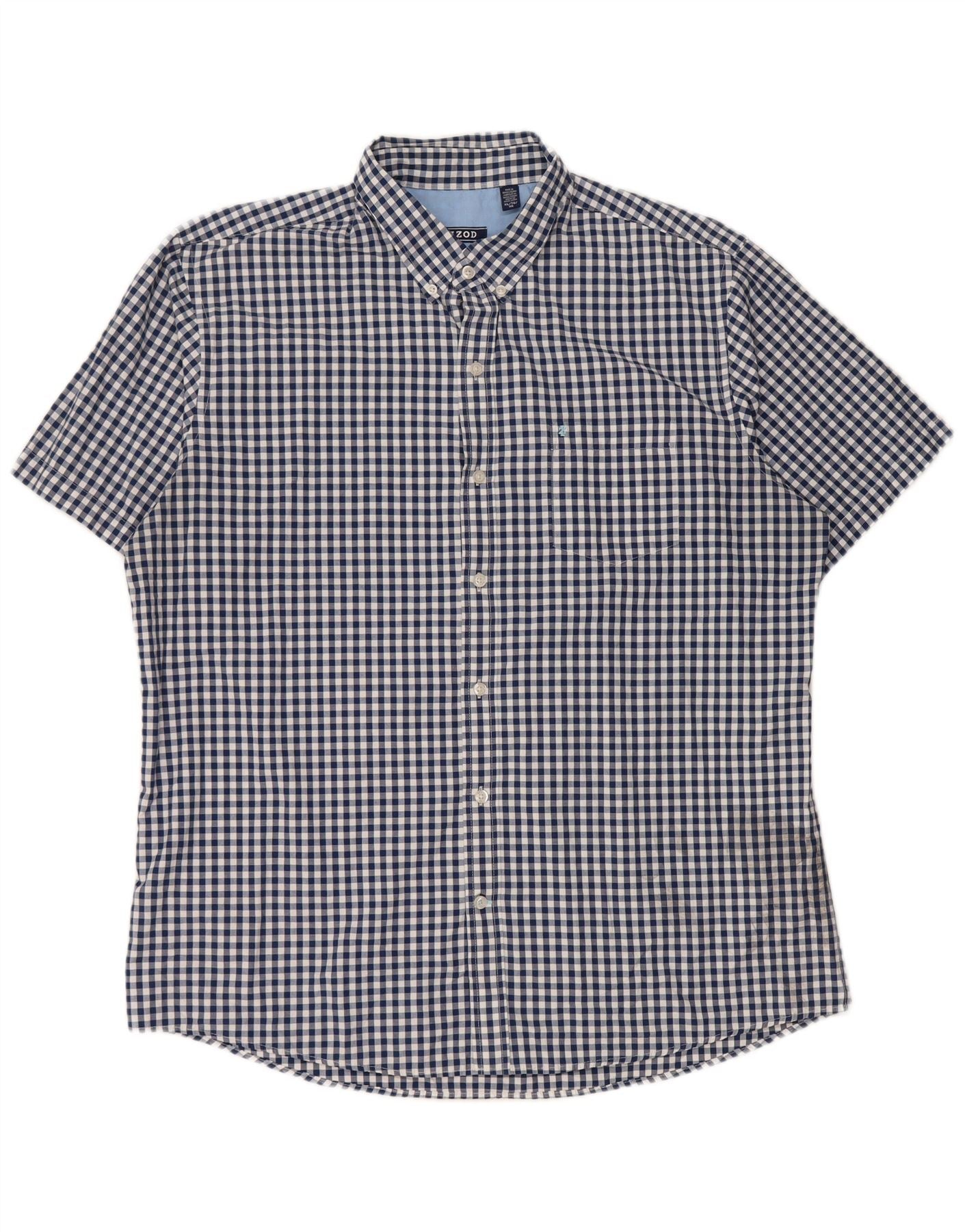 IZOD Męska koszula z krótkim rękawem XL, niebieska bawełniana kratka