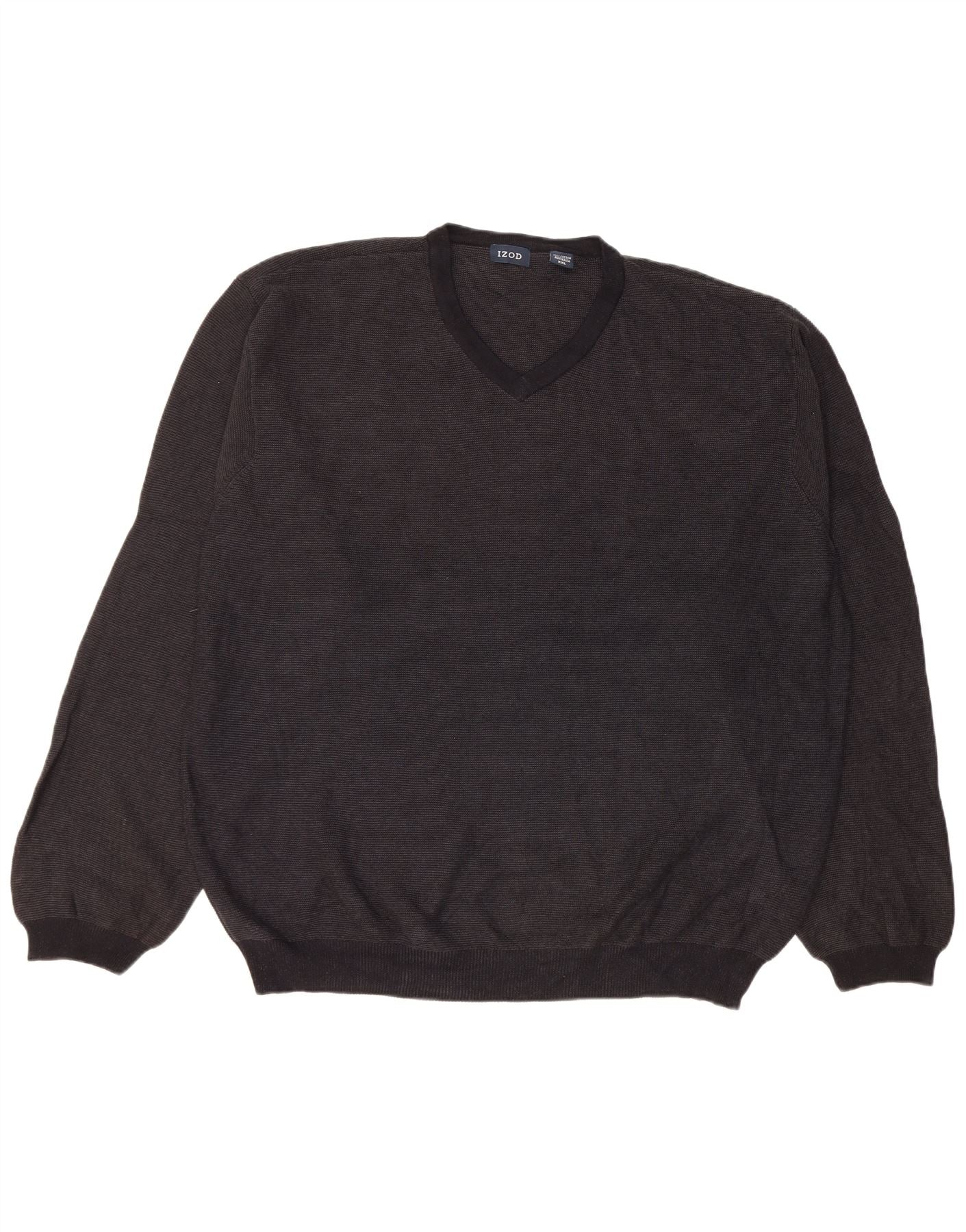 Izod Męski sweter z dekoltem w kształcie litery V, 2XL, czarny, bawełniany