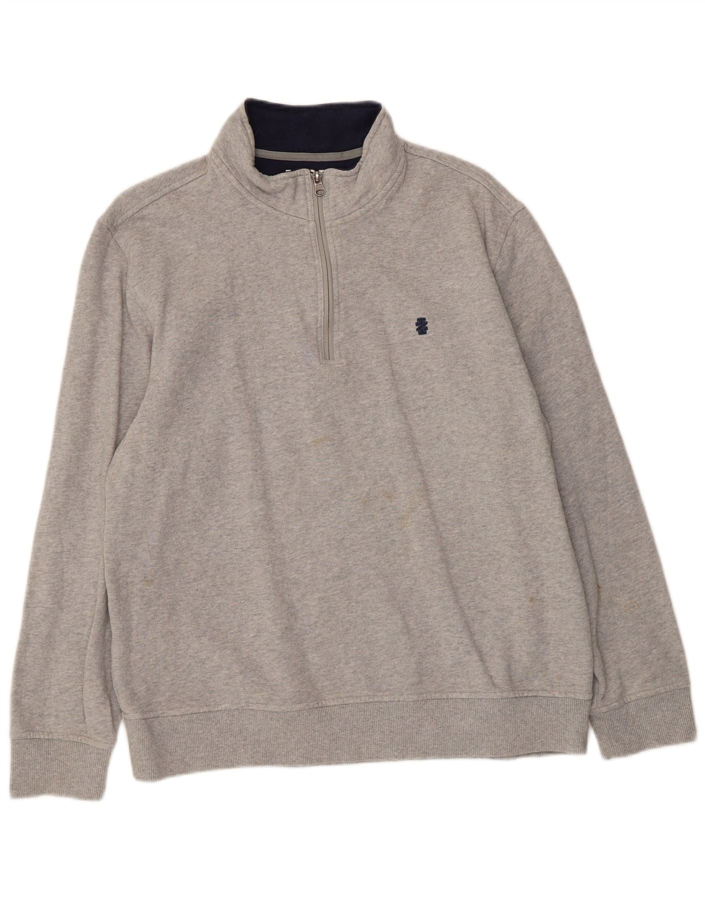 Izod Męski sweter z zamkiem błyskawicznym, średnioszary, bawełniany