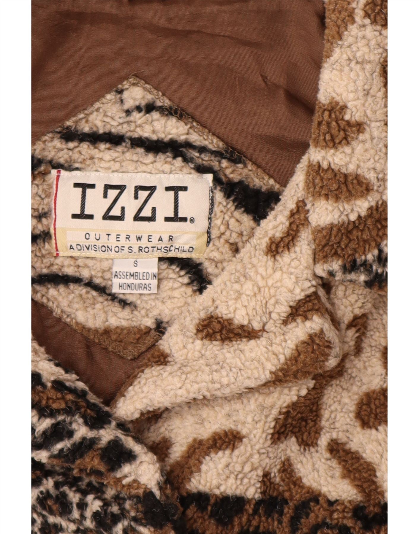 Damska kurtka polarowa oversize IZZI UK 10, mała, brązowa, z nadrukiem zwierzęcym, akrylowa