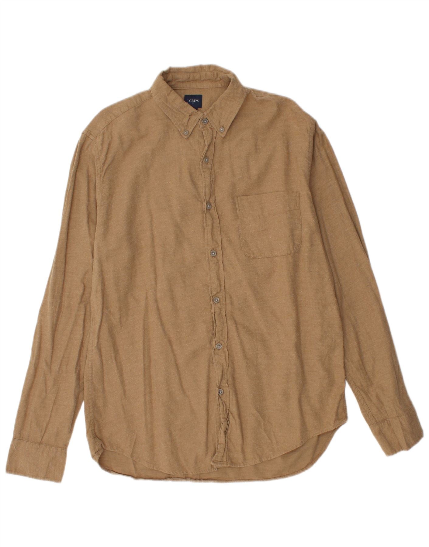J. CREW Męska koszula flanelowa, średnio beżowa, bawełniana