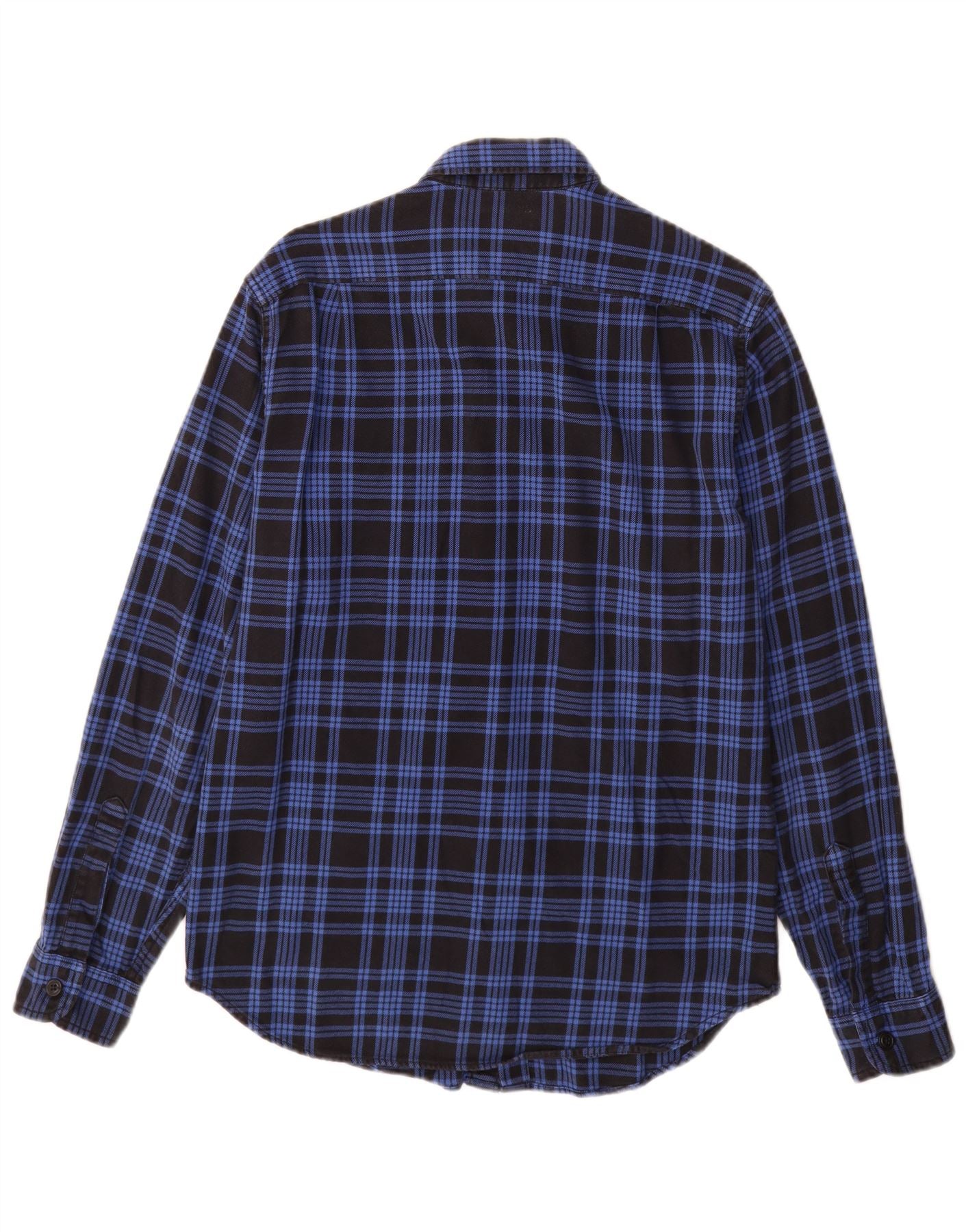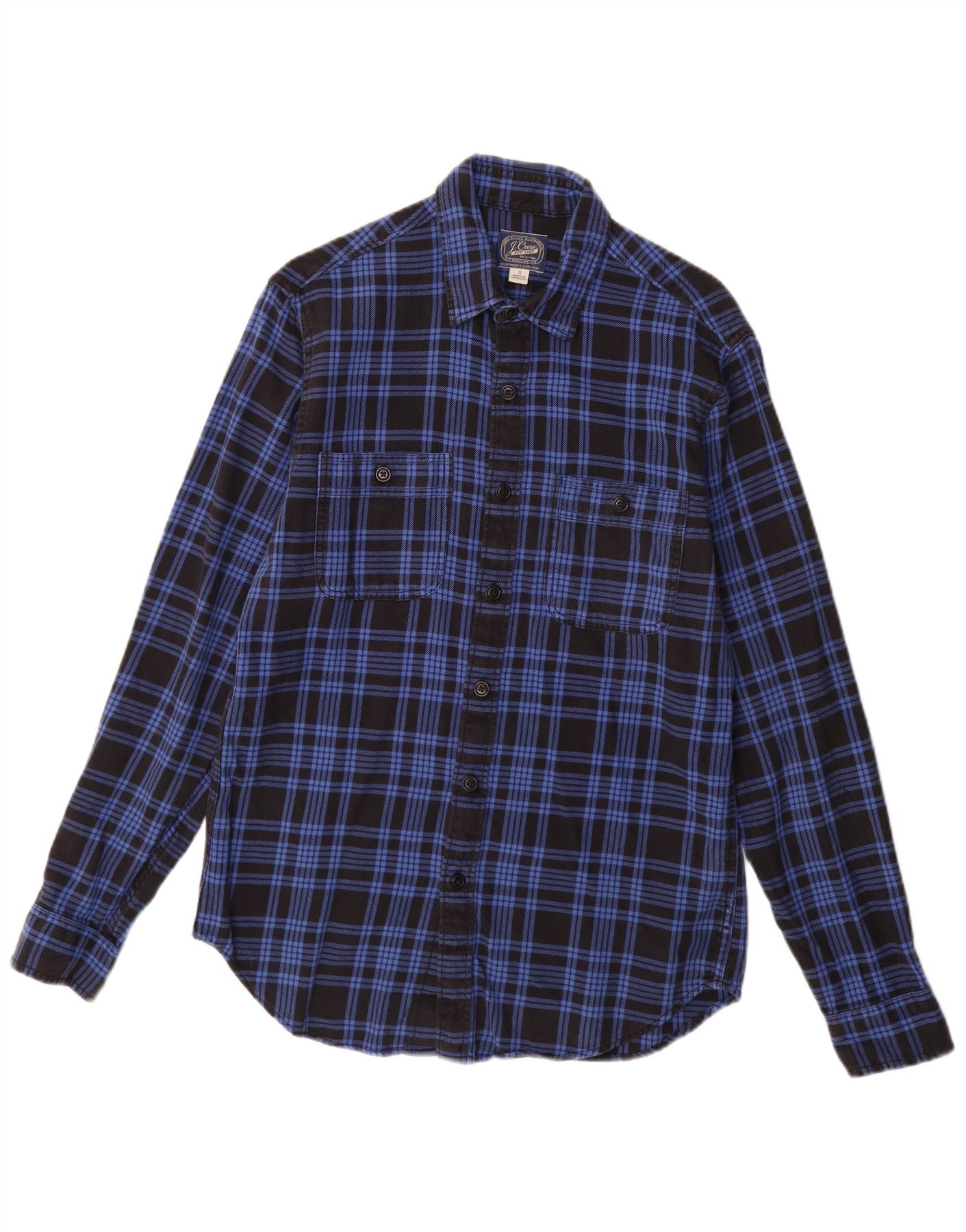 J. CREW Męska koszula flanelowa w małą niebieską kratkę, bawełniana