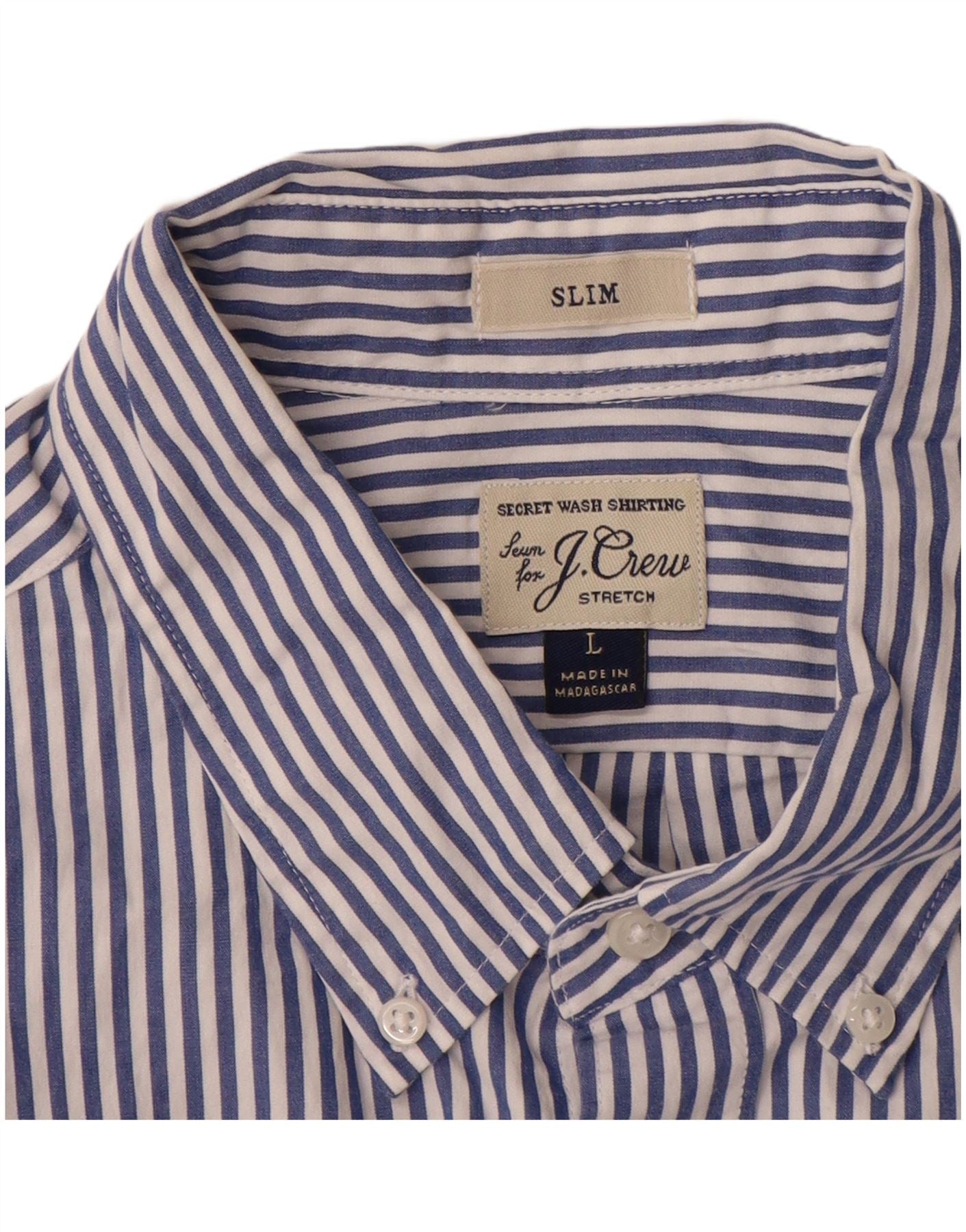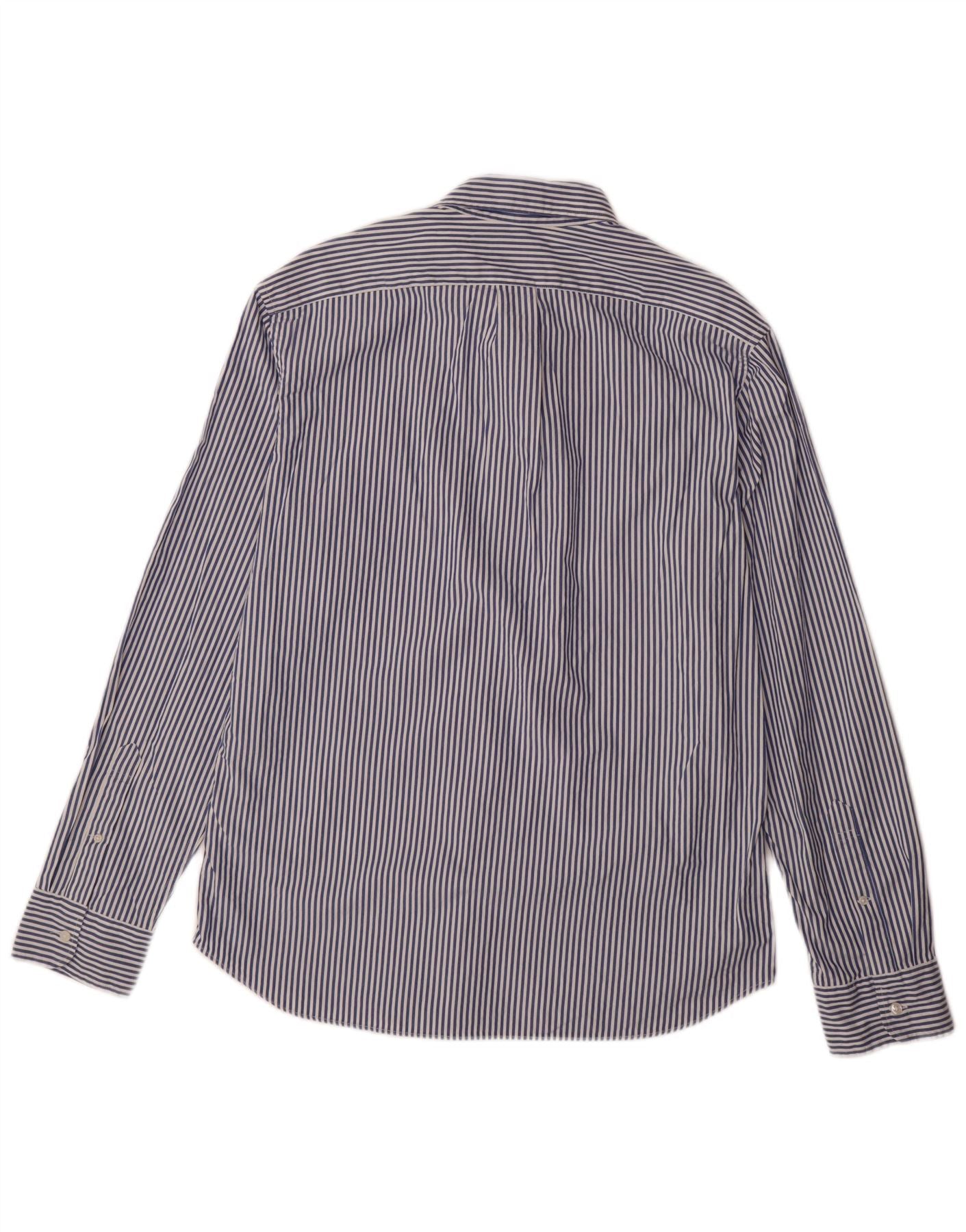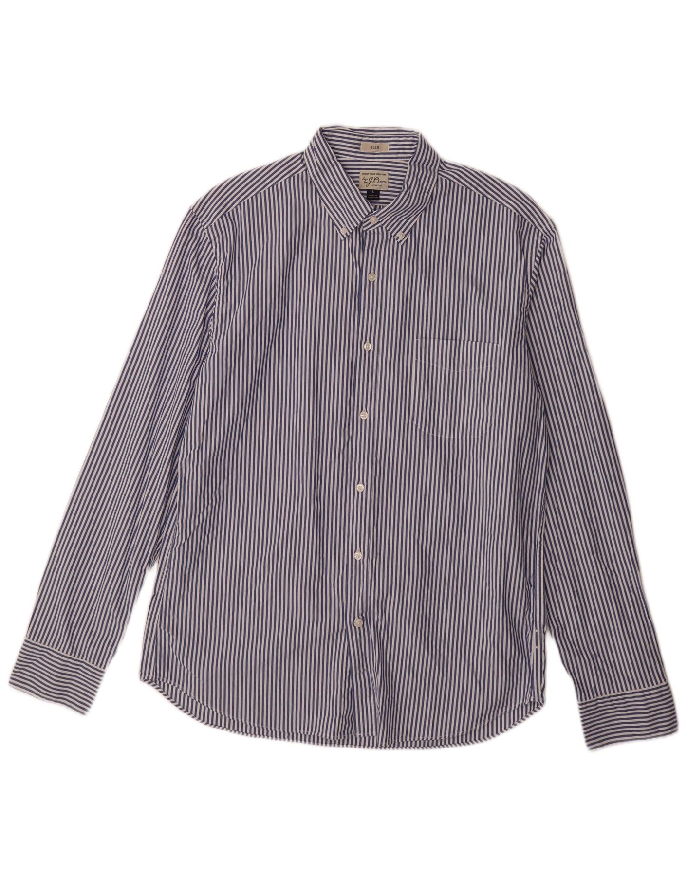 J. CREW Męska dopasowana koszula, duża, granatowa, bawełniana w prążki