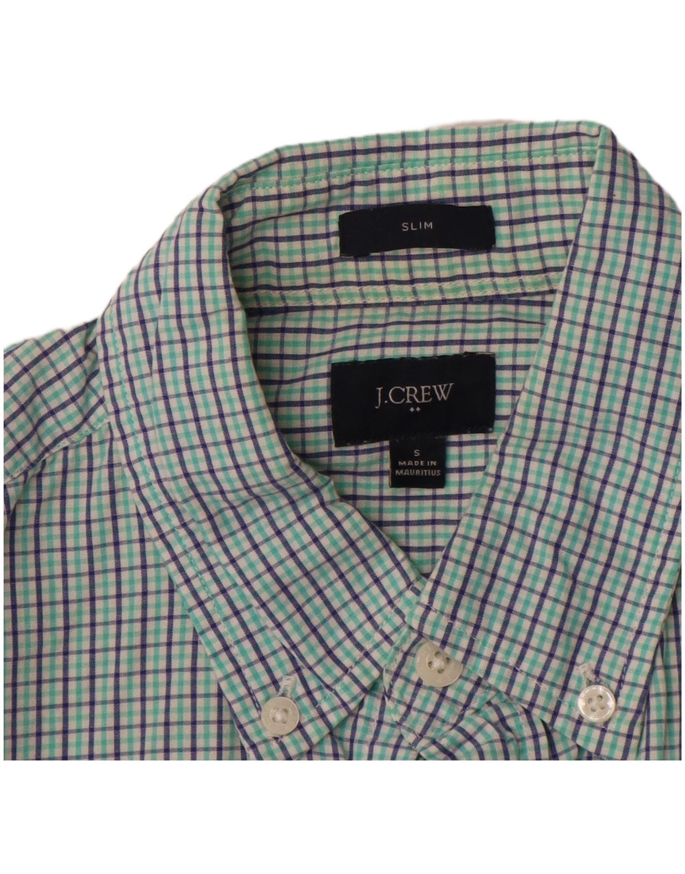 J. CREW Męska dopasowana koszula w małą zieloną kratkę, bawełniana