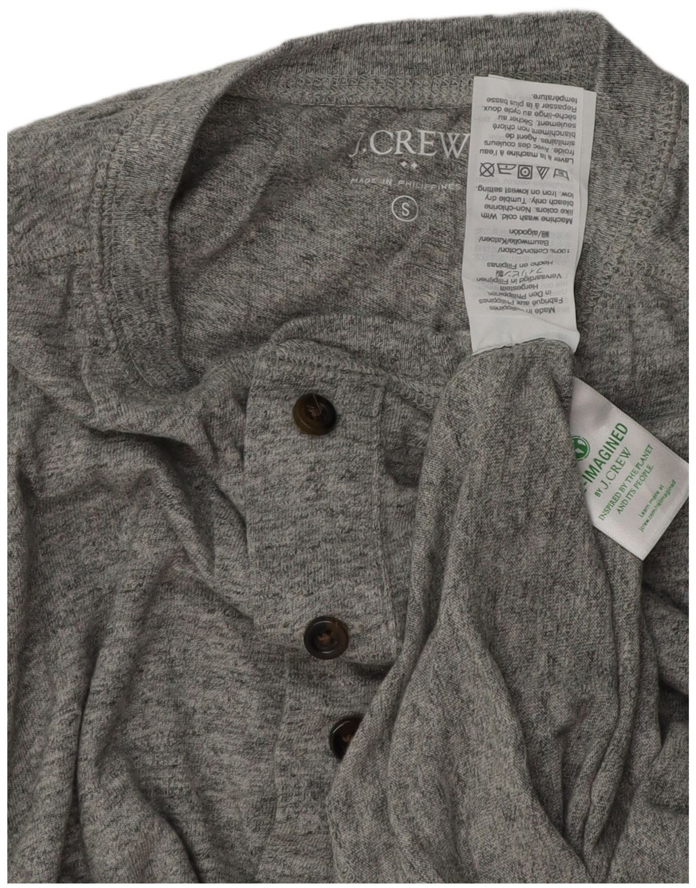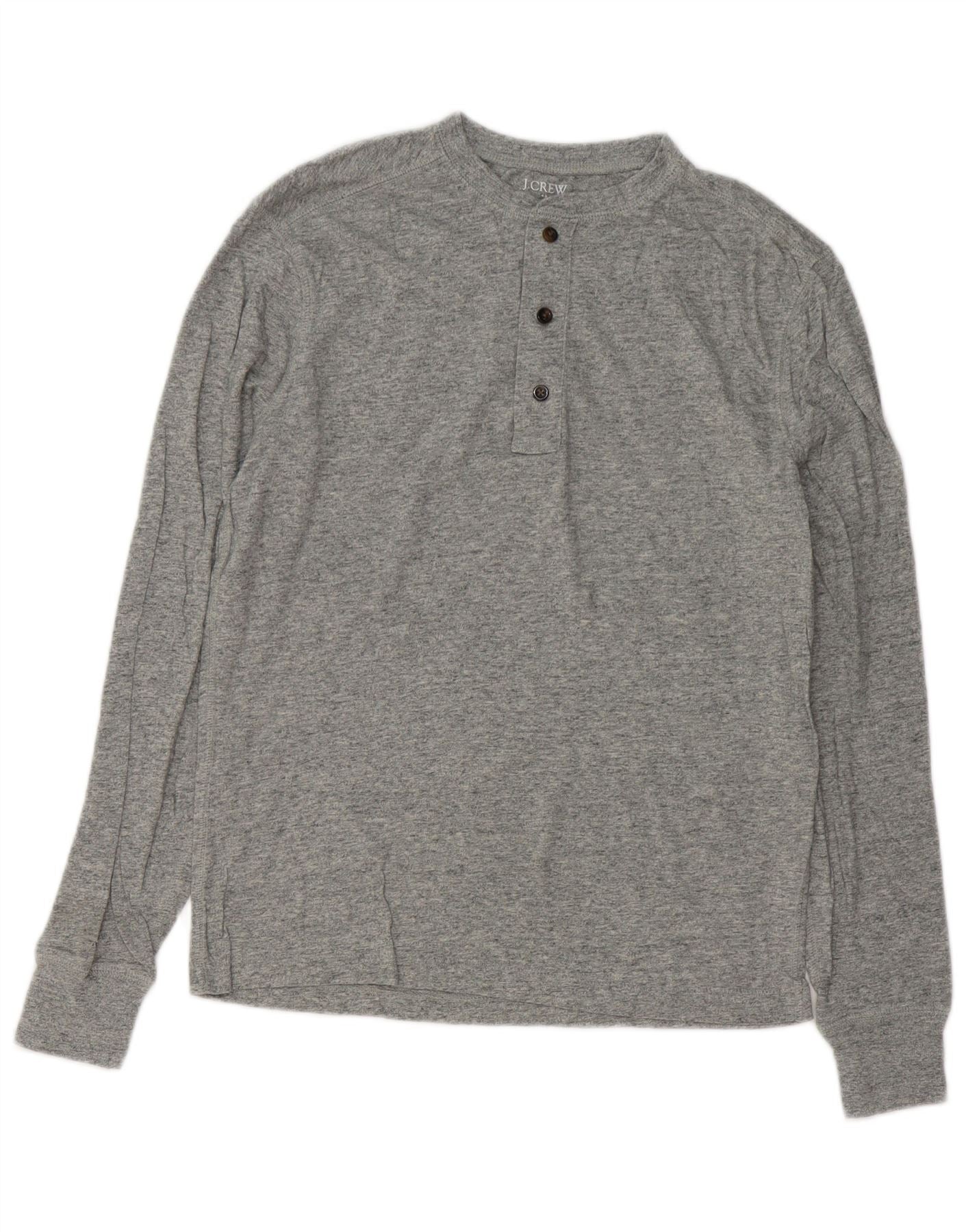 J. CREW Męski top z długim rękawem, mały, szary, nakrapiany, bawełniany
