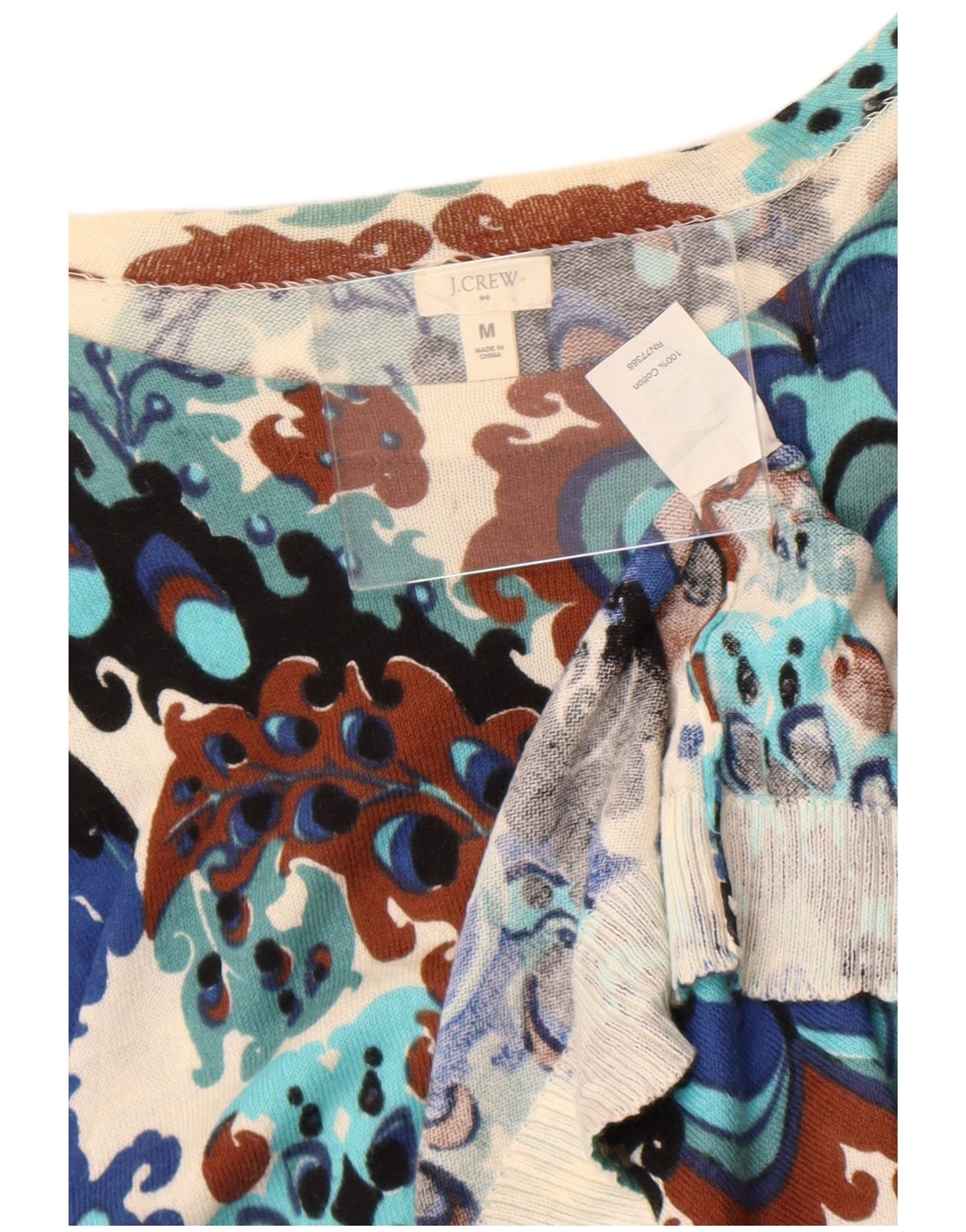 Damski sweter J. Crew z dekoltem w łódkę, UK 12, średni, wielobarwny wzór paisley