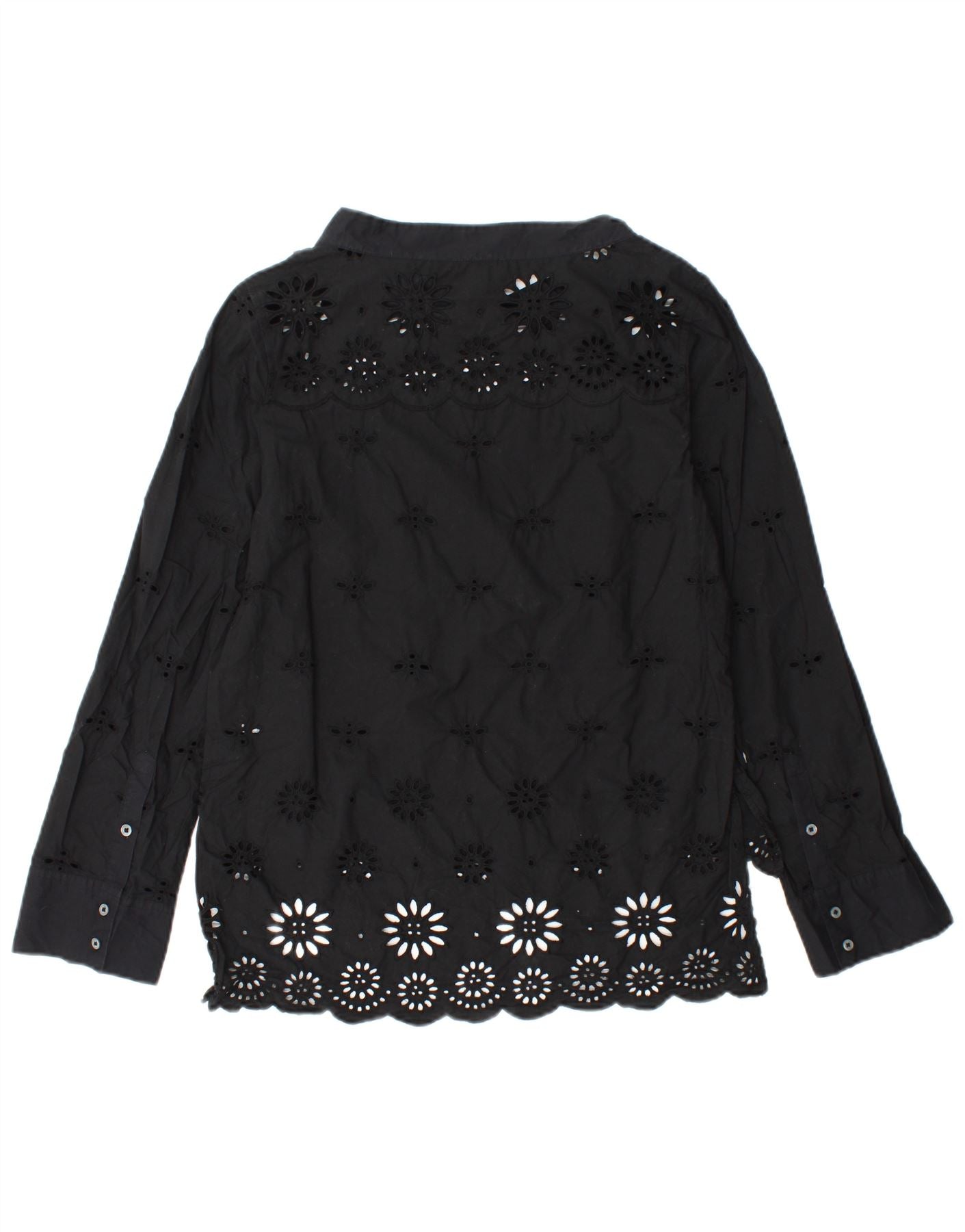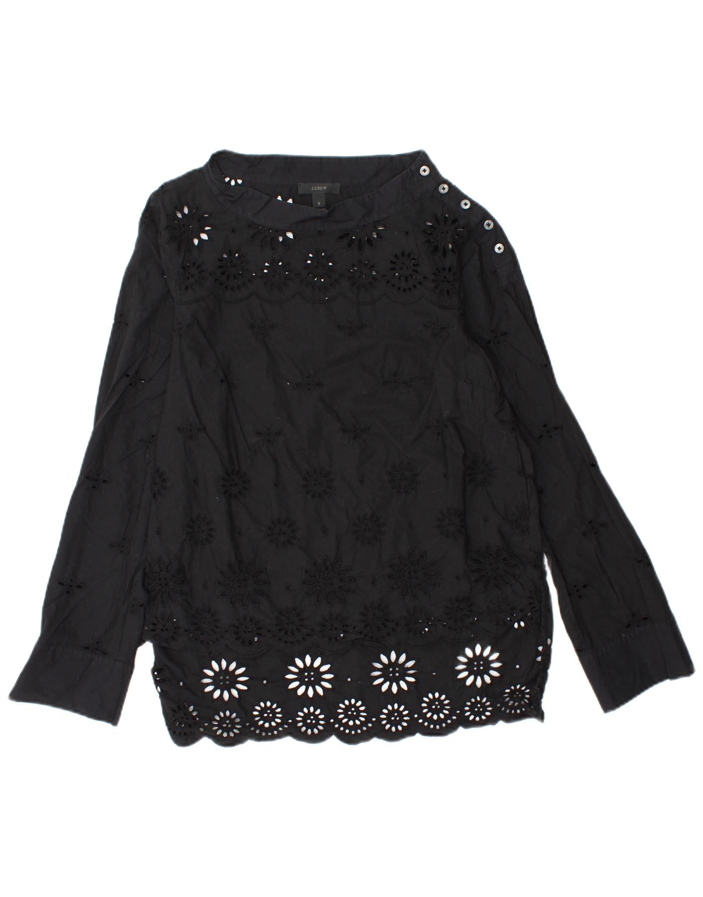 Damska bluzka z długim rękawem J. CREW US 2 XS, czarna, bawełniana w kwiaty