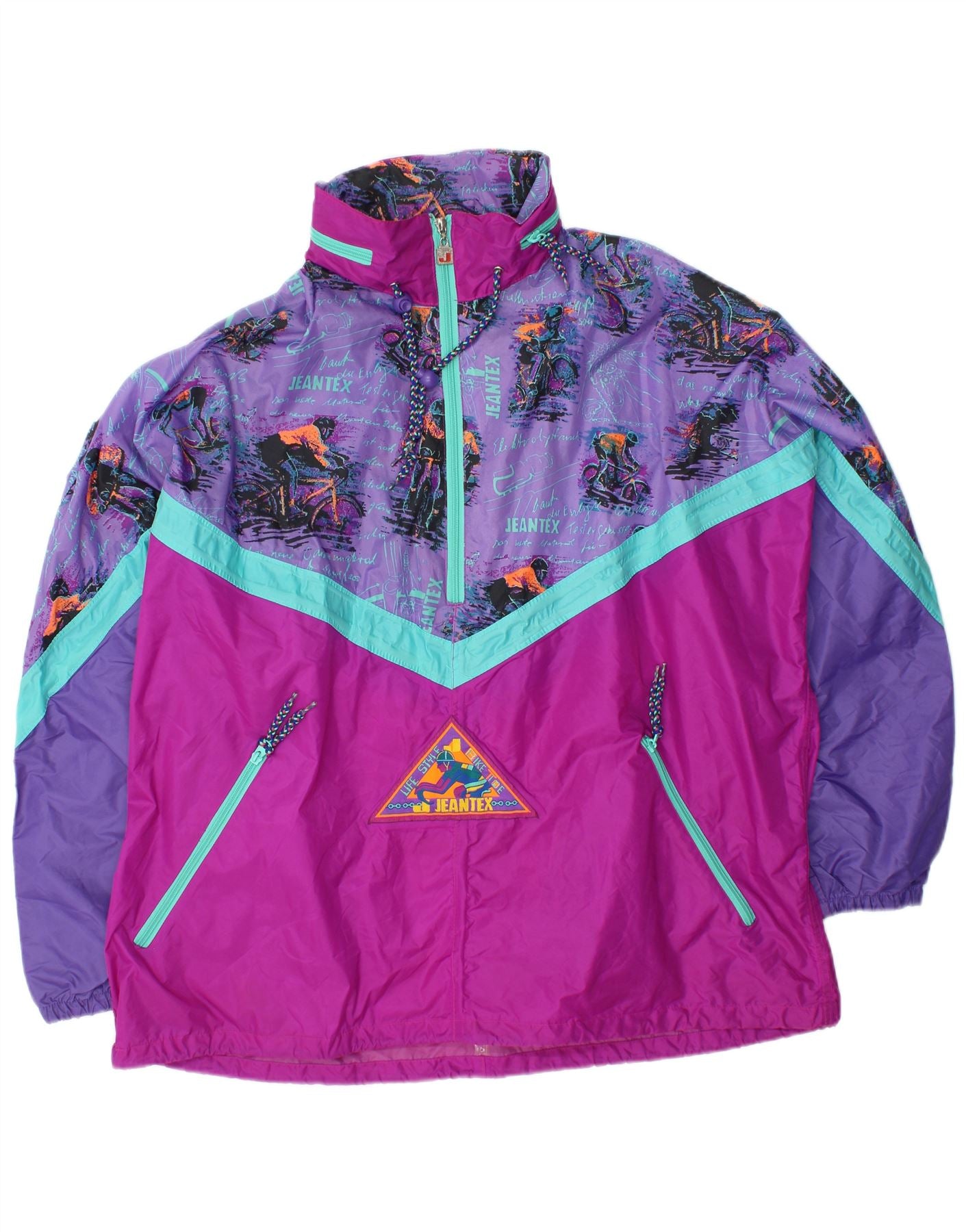 J JEANTEX Męska kurtka przeciwdeszczowa z kapturem i kapturem UK 44/46 2XL Fioletowy blok kolorów