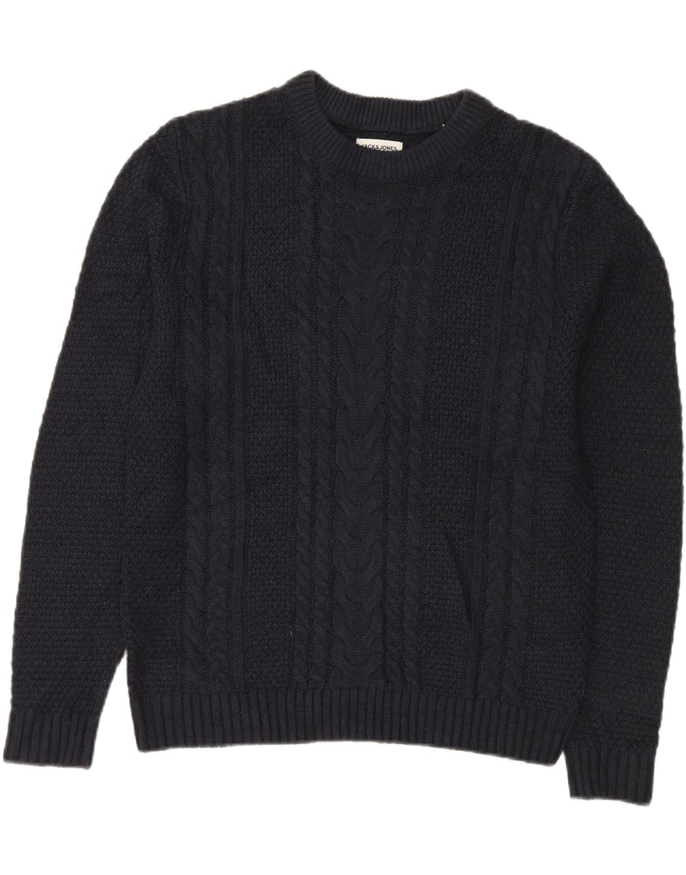 JACK & JONES Męski sweter z okrągłym dekoltem, średni granatowy akryl