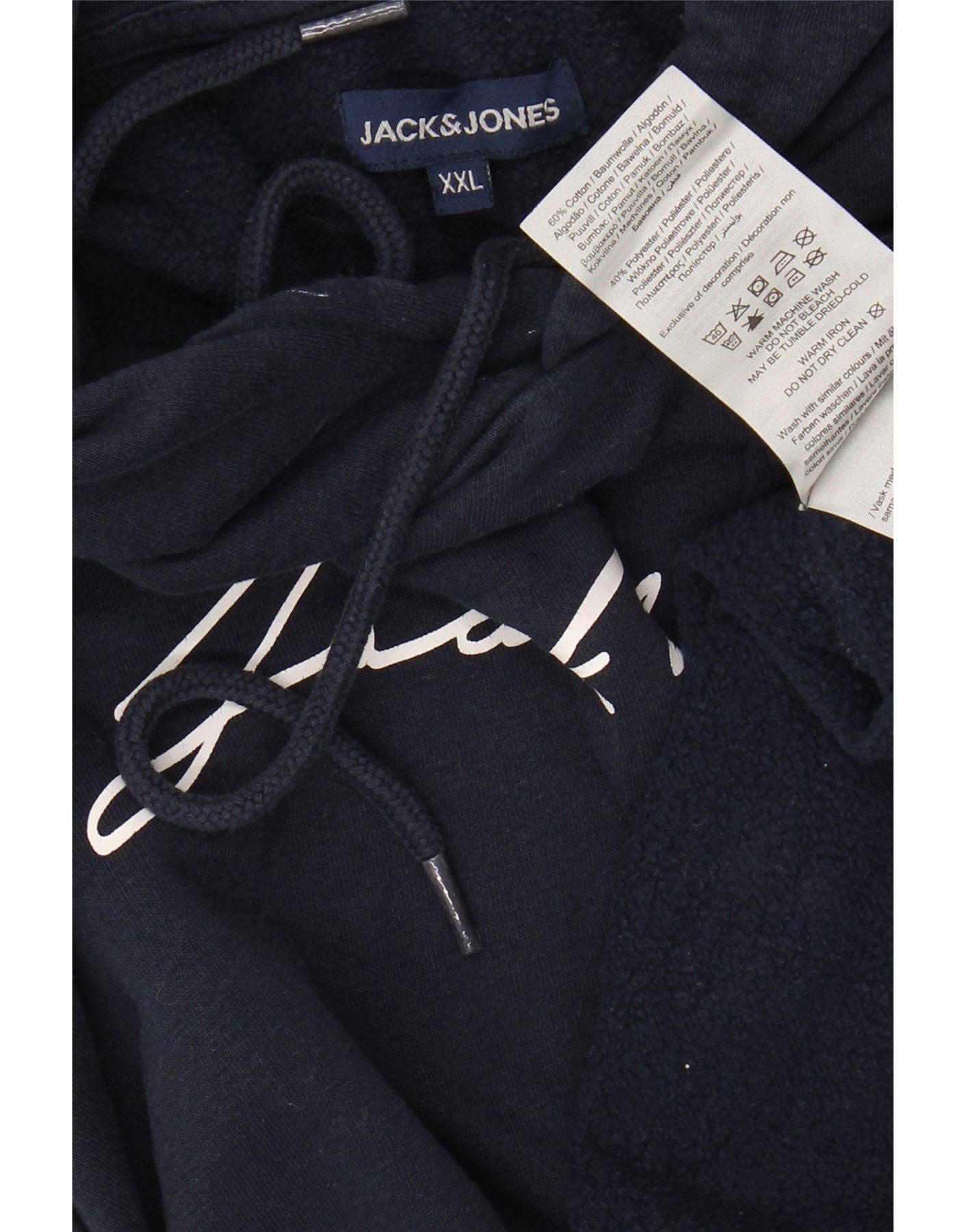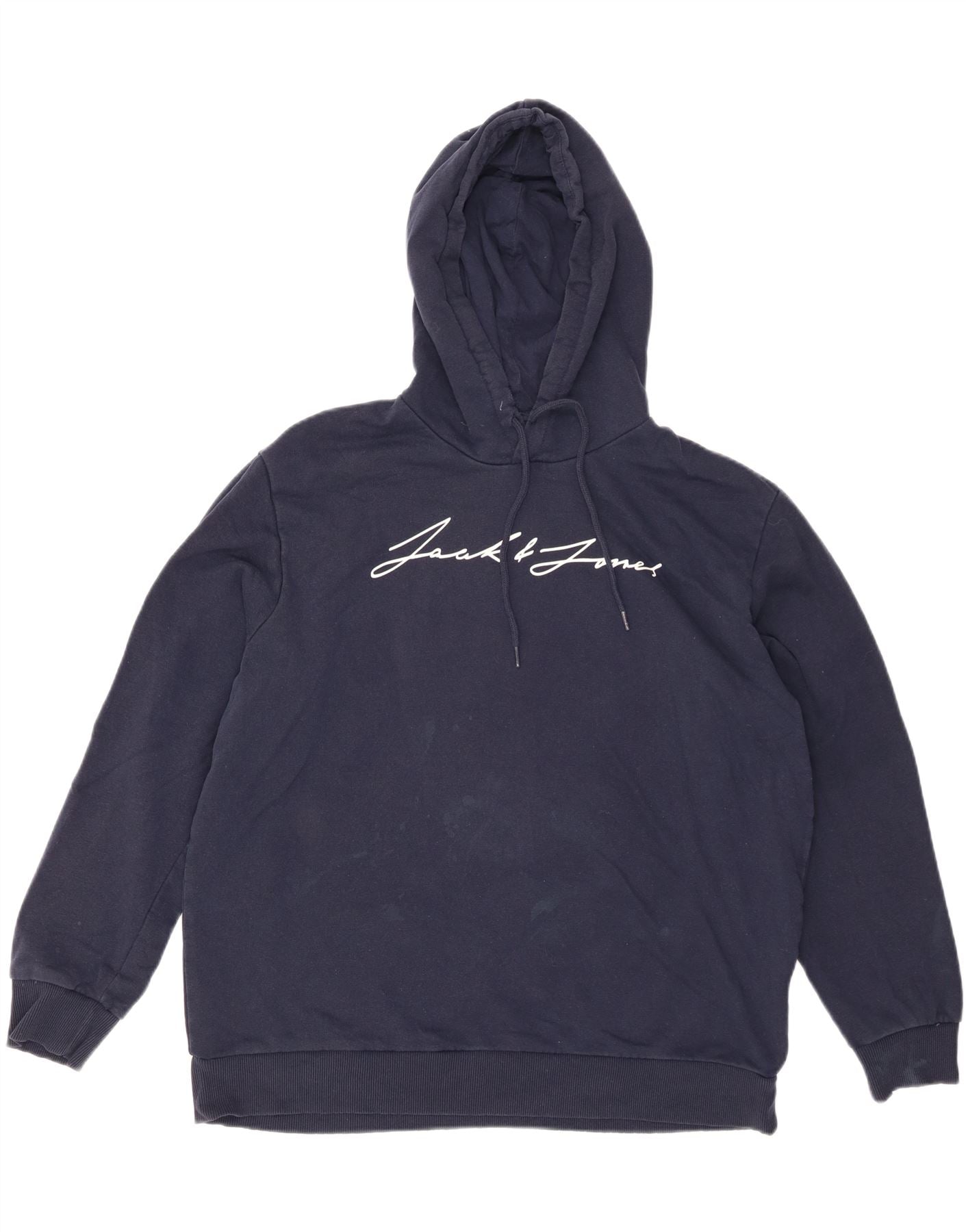 JACK & JONES Mens Graphic Hoodie Jumper 2XL Navy Blue Cotton