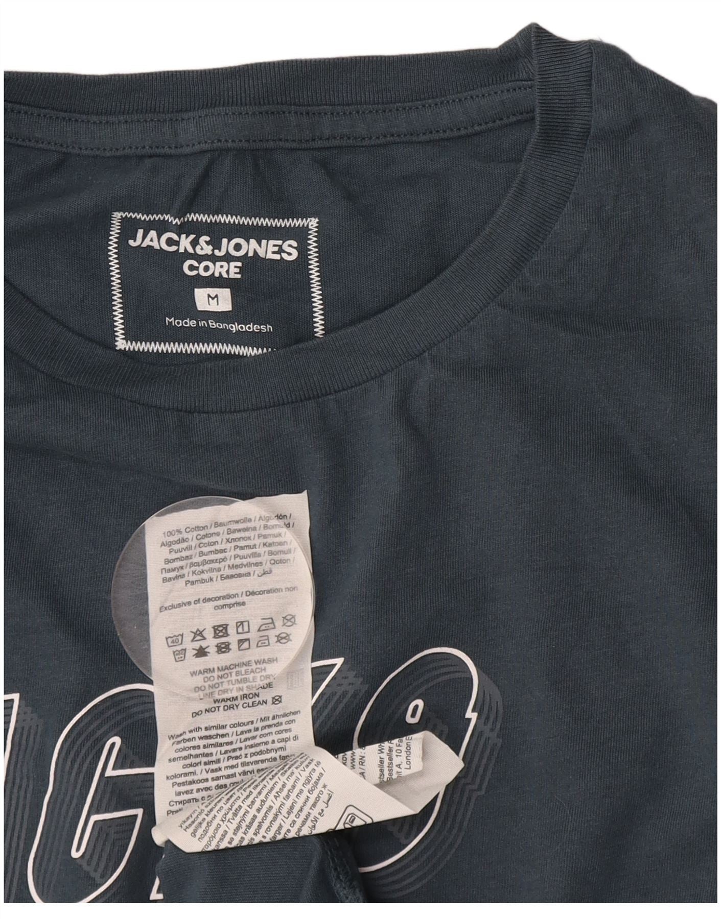 Męska koszulka z grafiką JACK & JONES, średnia, granatowa, bawełniana