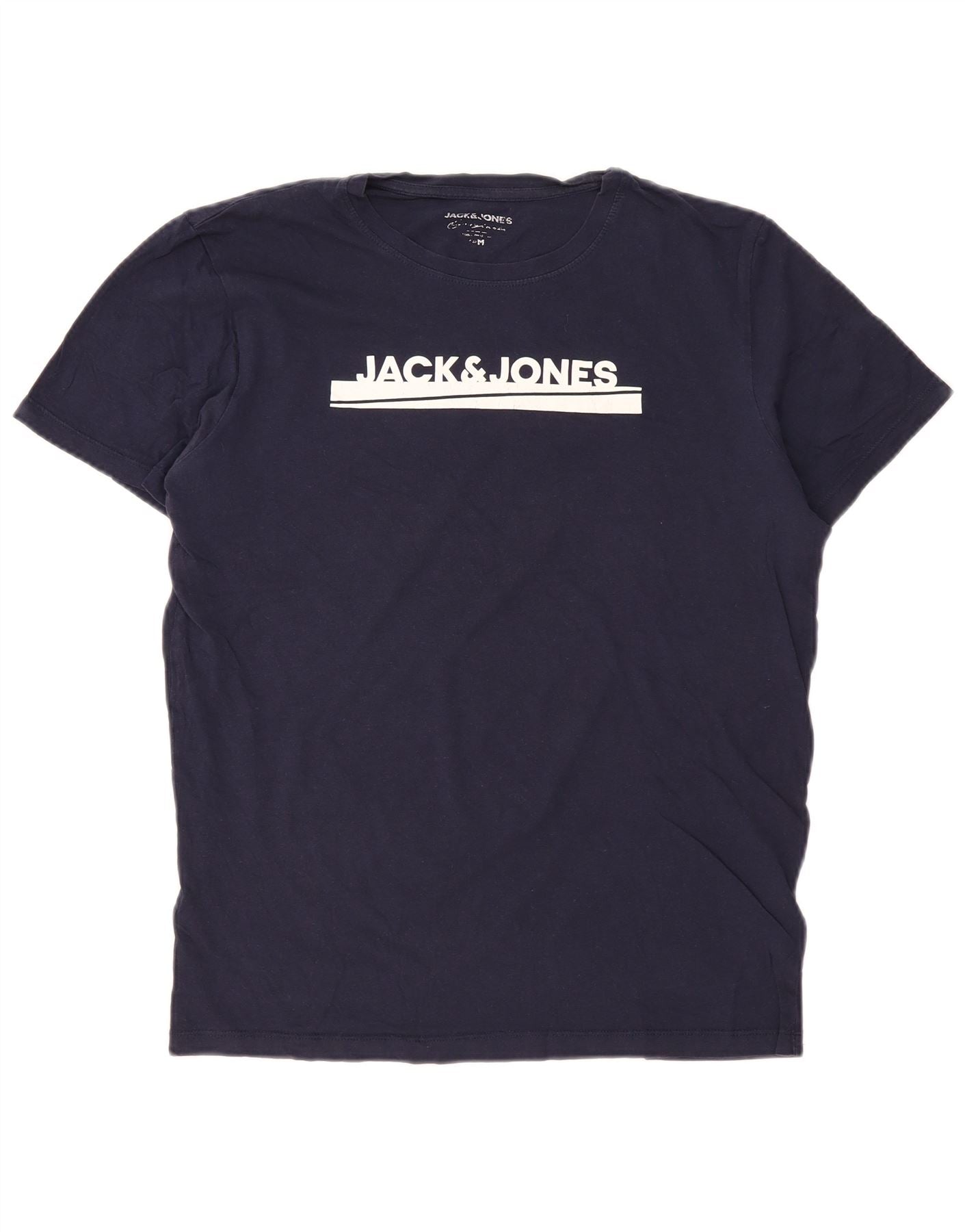 Męska koszulka z grafiką JACK & JONES, średnia, granatowa, bawełniana