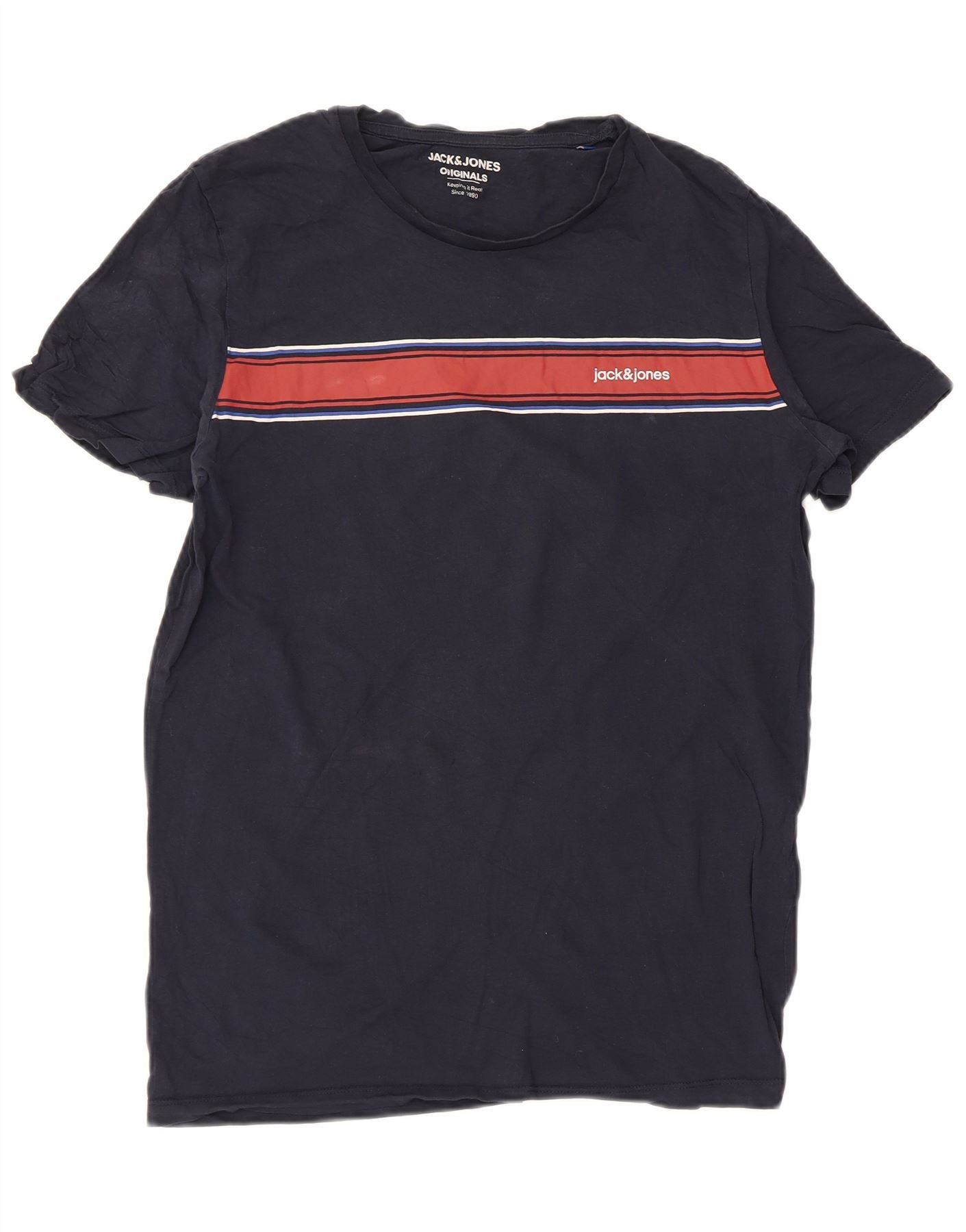 Męski T-shirt z grafiką Jack & Jones, bawełniany, średni, granatowy w paski