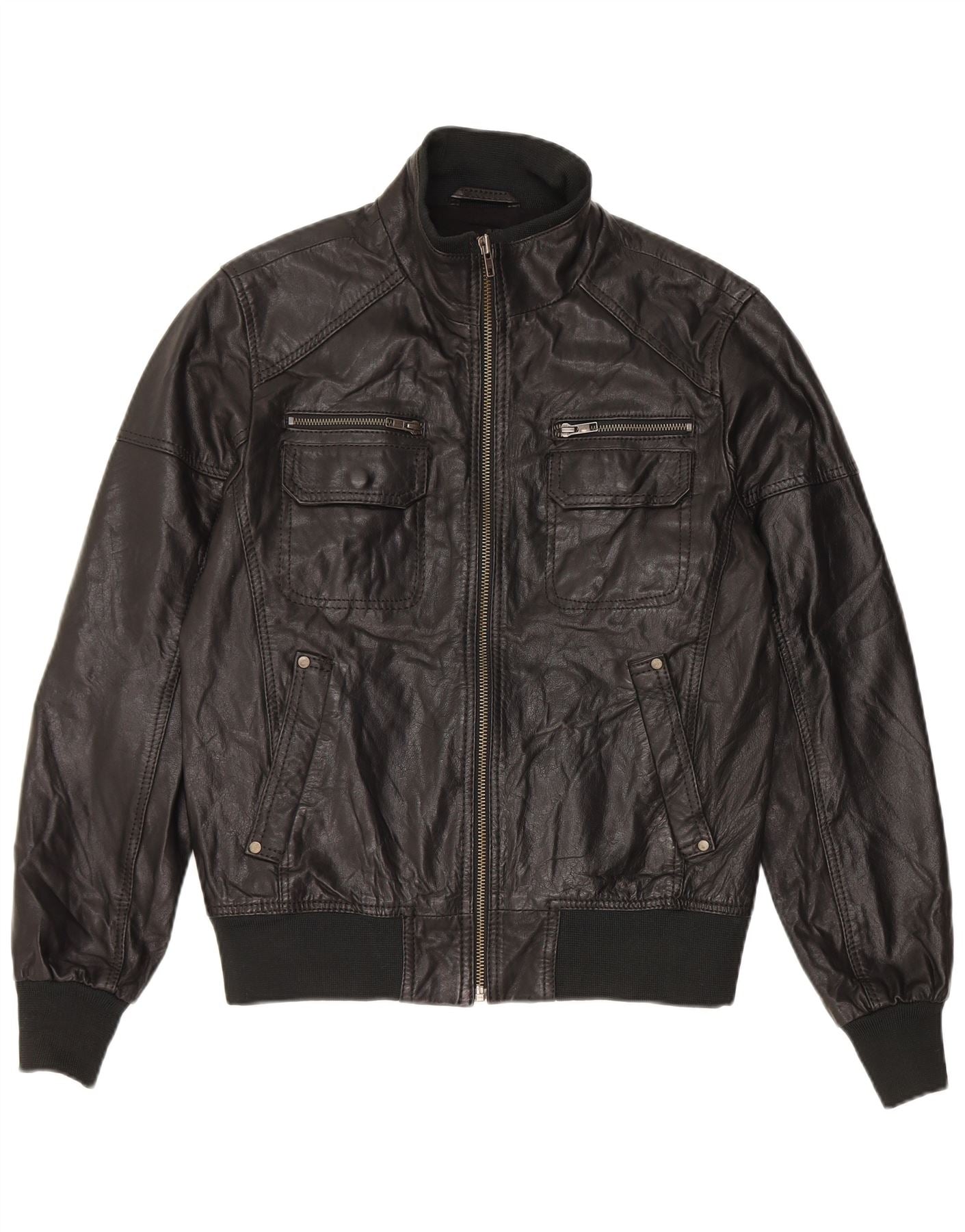 Męska skórzana kurtka bomber Jack & Jones UK 36, mała czarna skóra