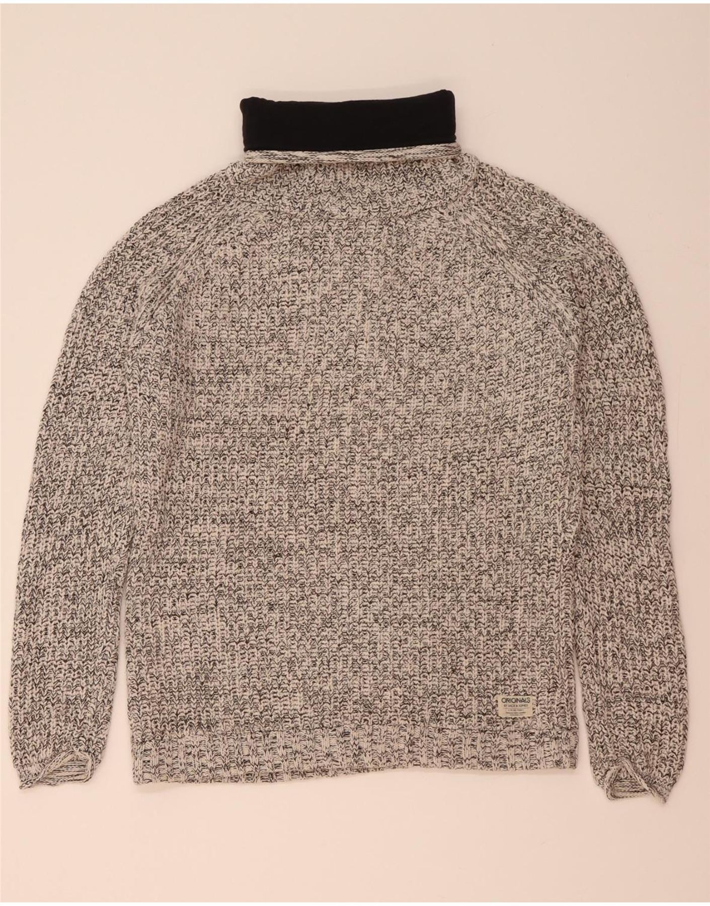 JACK & JONES Męski sweter z wywijanym dekoltem XL, szary, bawełniany w plamki