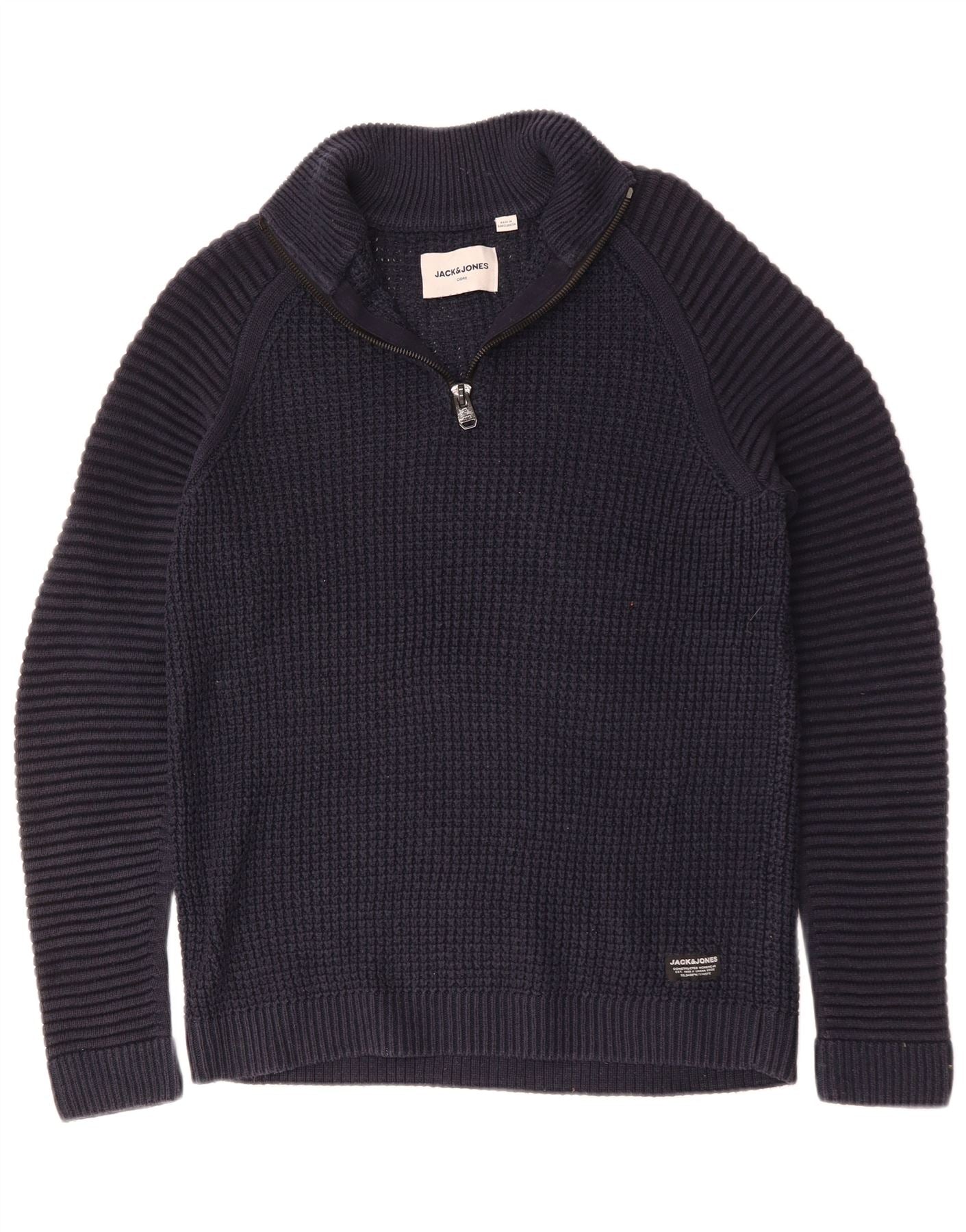 JACK & JONES Męski sweter zapinany na zamek, duży, granatowy, bawełniany