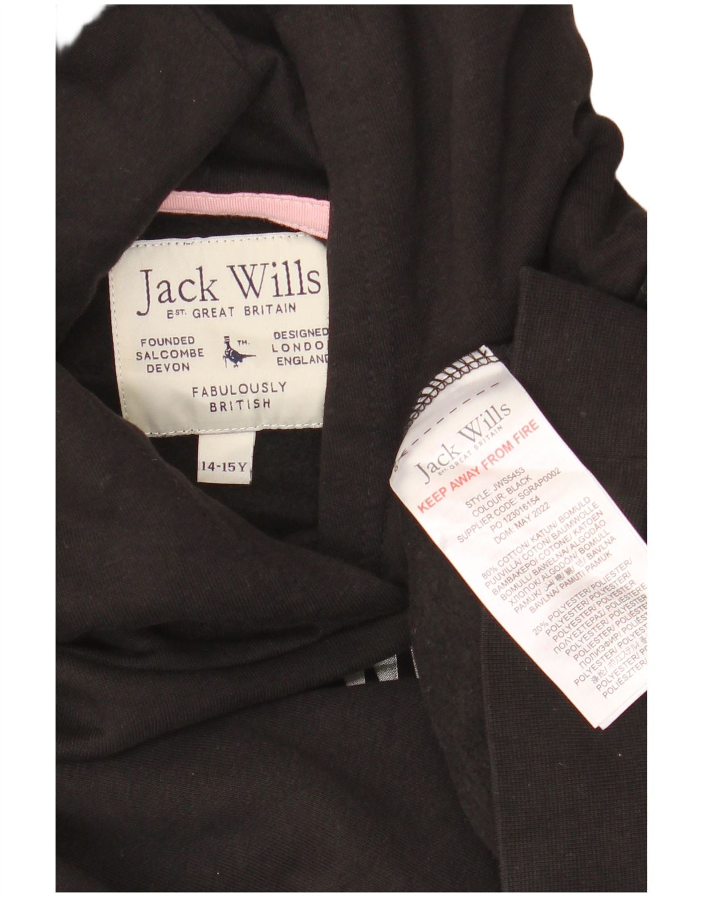 JACK WILLS Dziewczęcy, oversize'owy sweter z kapturem i grafiką, 14-15 lat, czarny