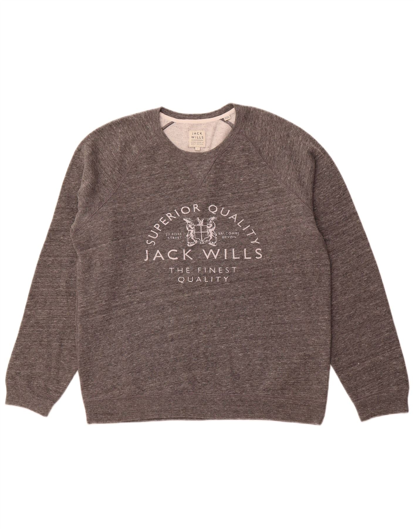 Męski sweter JACK WILLS z graficznym wycięciem pod szyją XL, szara, bawełniana w plamki