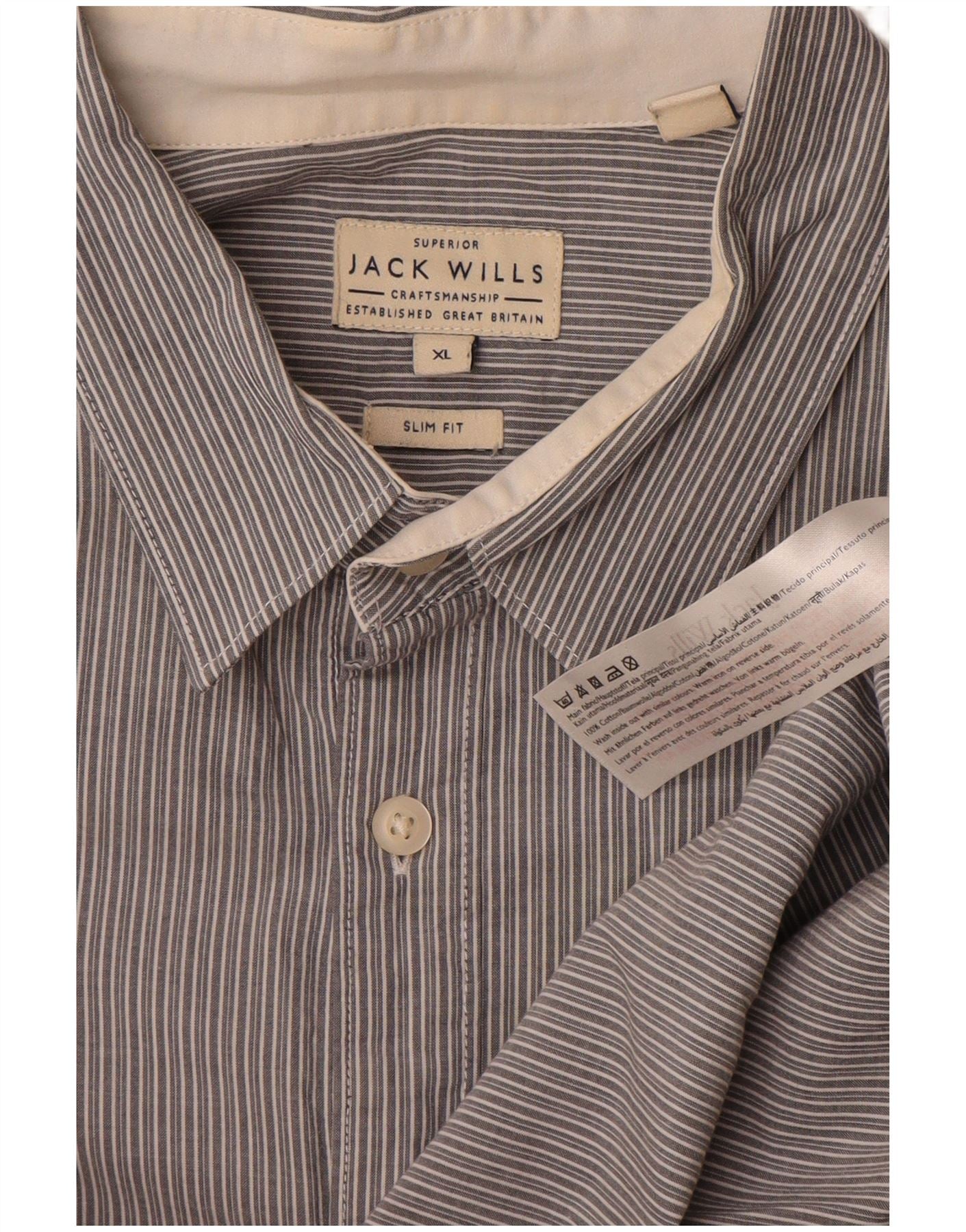 JACK WILLS Męska koszula slim fit XL, szara, bawełniana w prążki