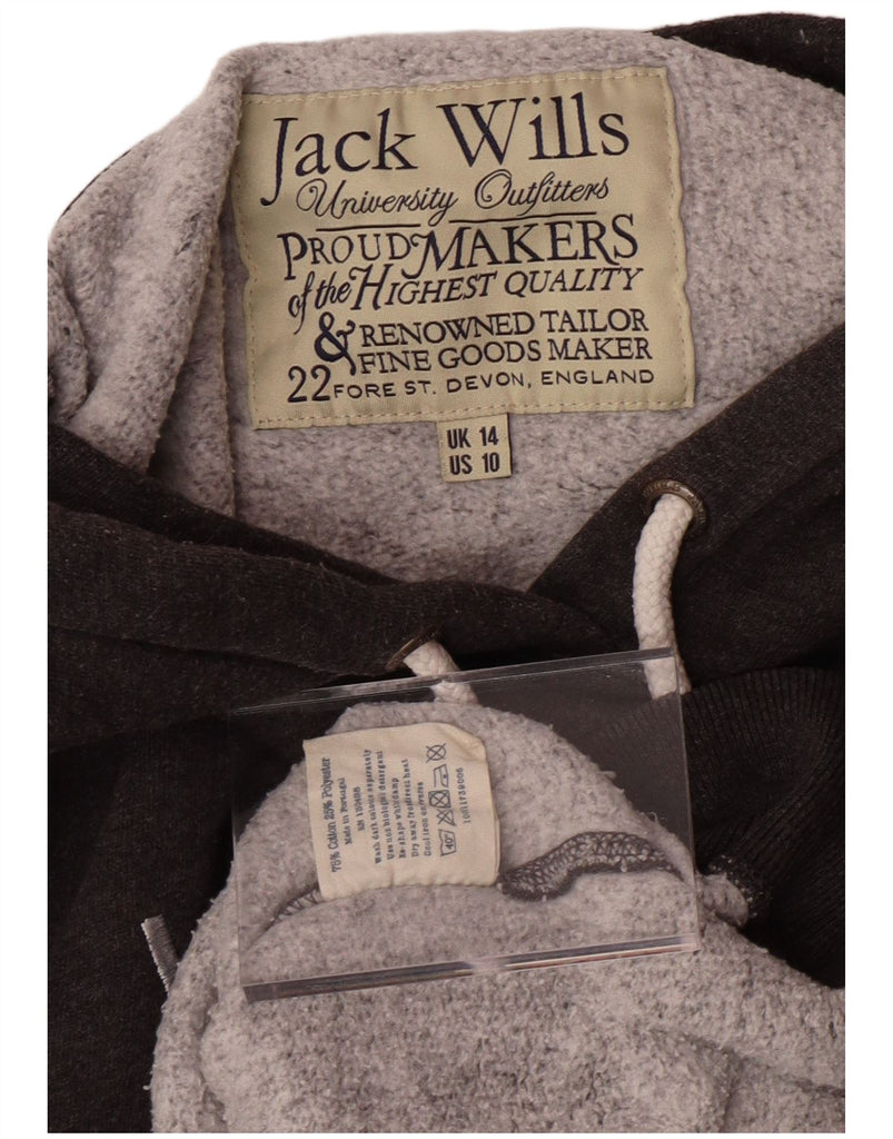 JACK WILLS Womens Graphic Hoodie Jumper UK 14 Large Grey Cotton