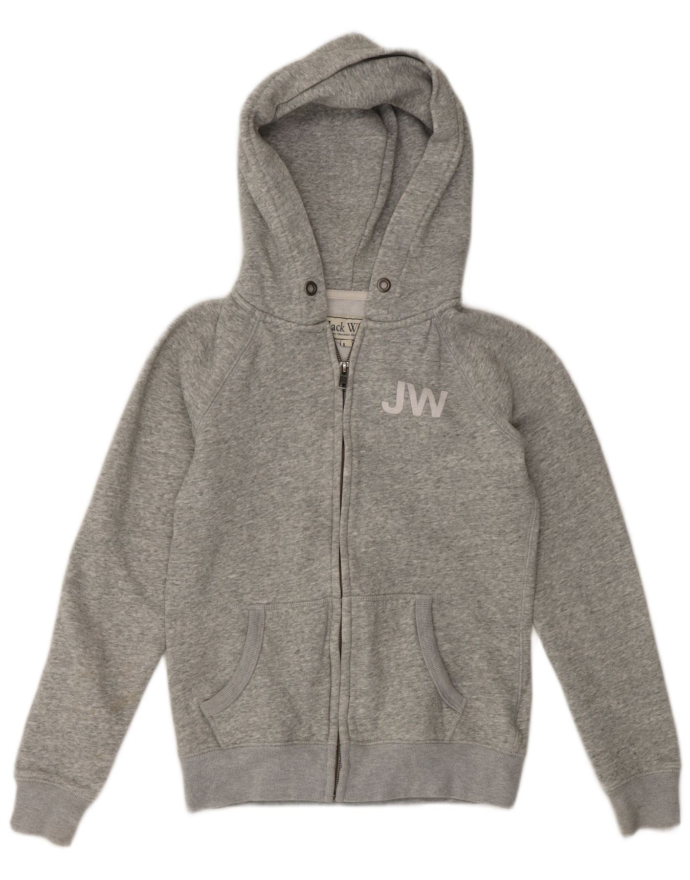 JACK WILLS Womens Graphic Zip Hoodie Sweater UK 6 XS Grey Cotton