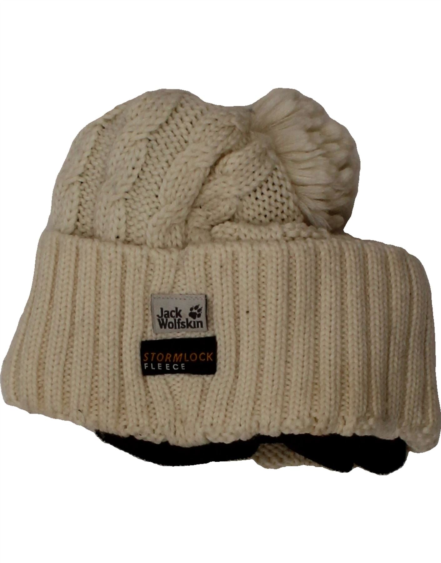 JACK WOLFSKIN Girls Storm Lock Knit Bobble Hat One Size Off White Winter