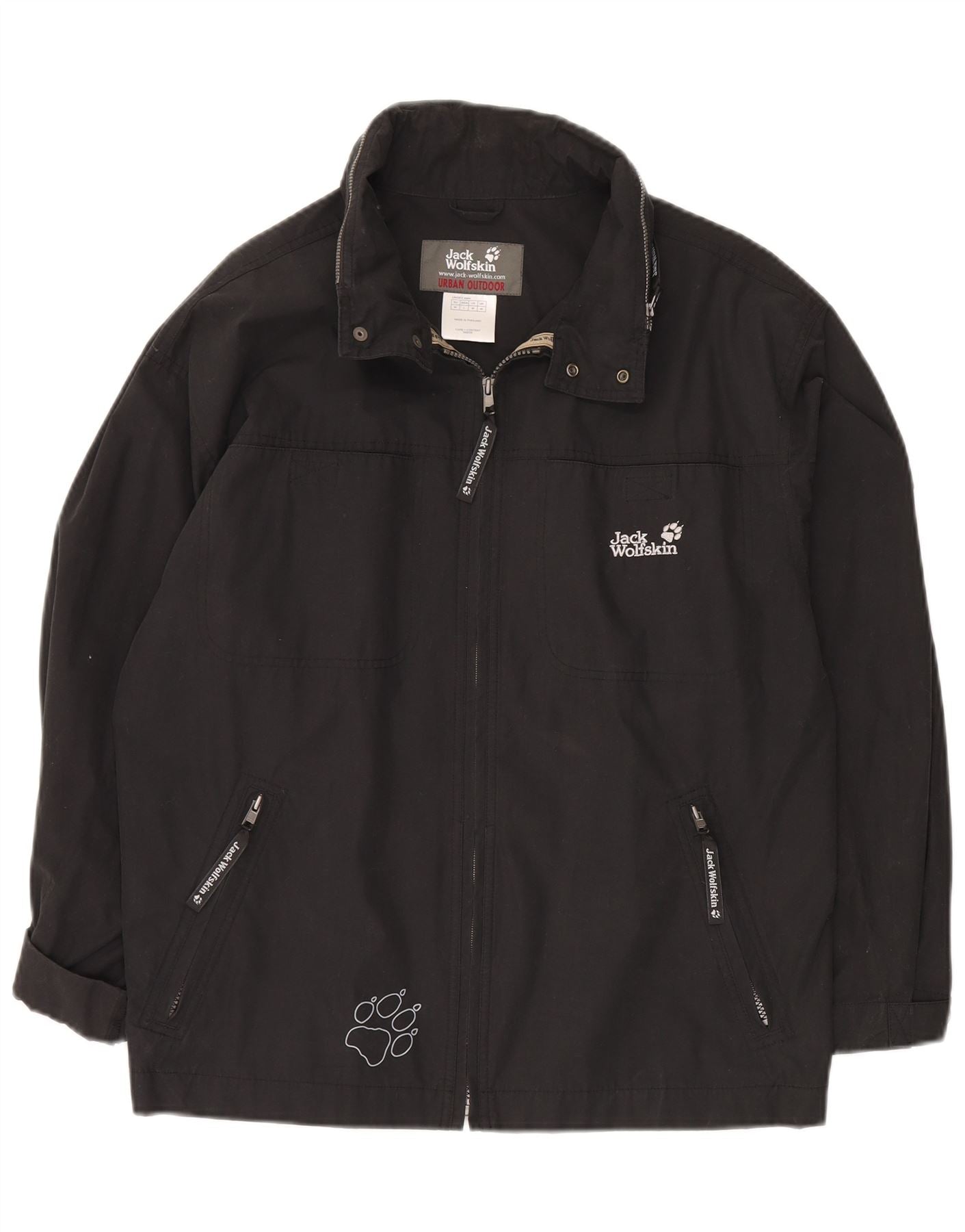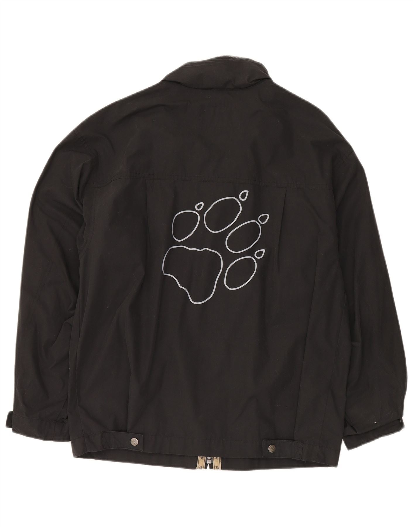 Męska kurtka przeciwdeszczowa z kapturem i grafiką JACK WOLFSKIN UK 38, średni czarny poliester