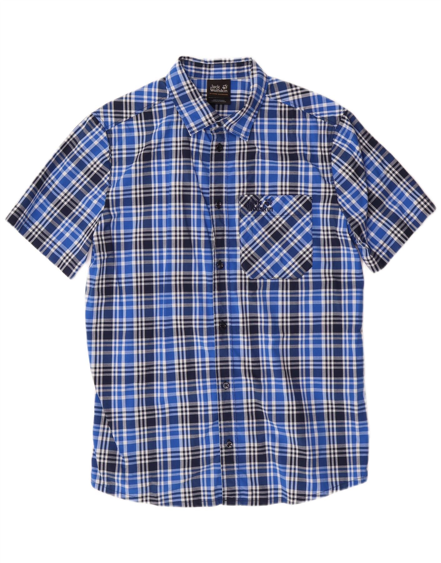 Koszula męska z krótkim rękawem JACK WOLFSKIN UK 36/38 w małą niebieską kratkę, poliamid