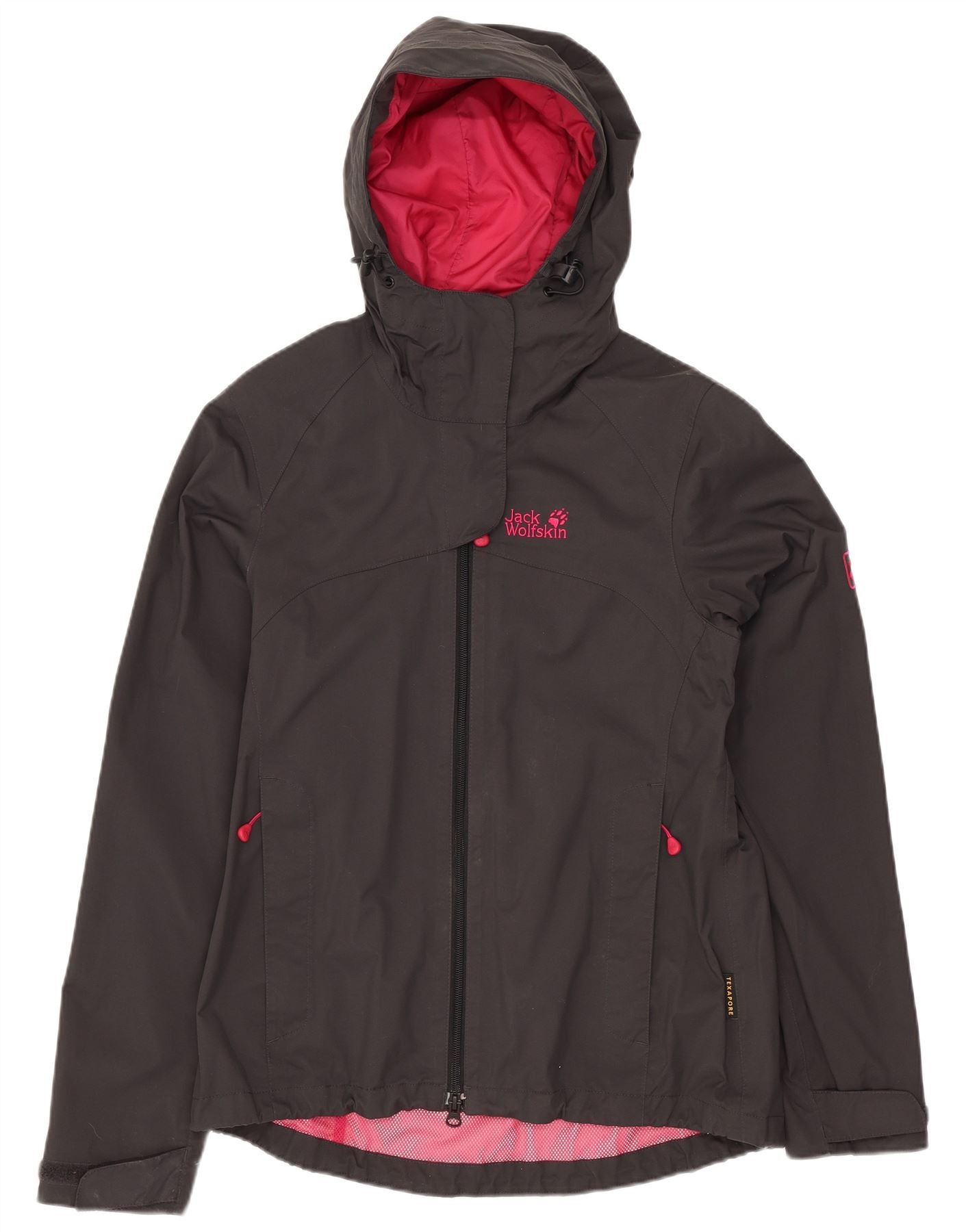 Damska kurtka przeciwdeszczowa z kapturem Jack Wolfskin UK 8/10 Small, szary poliamid