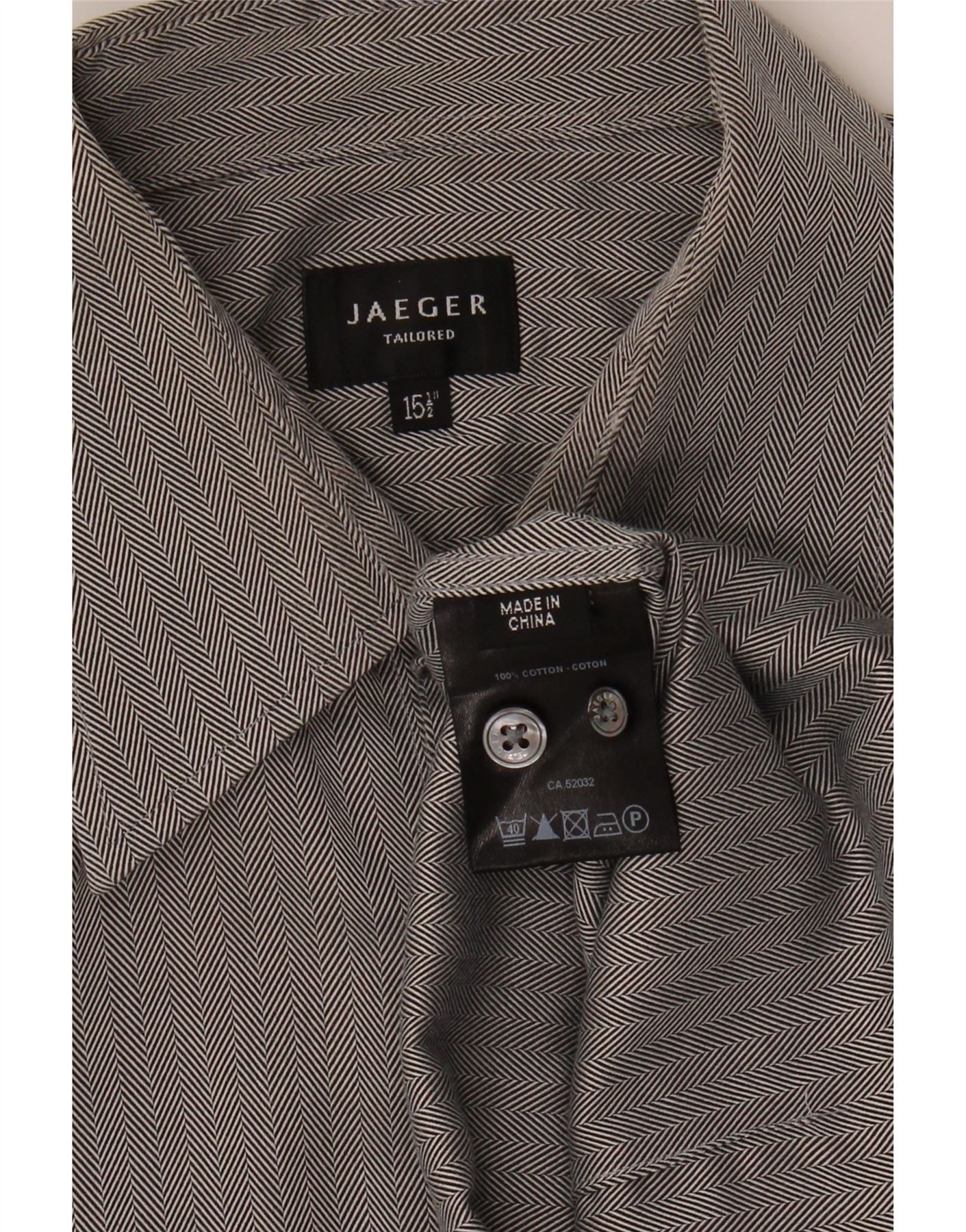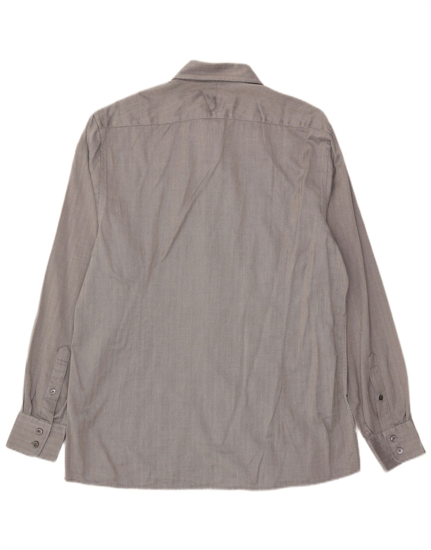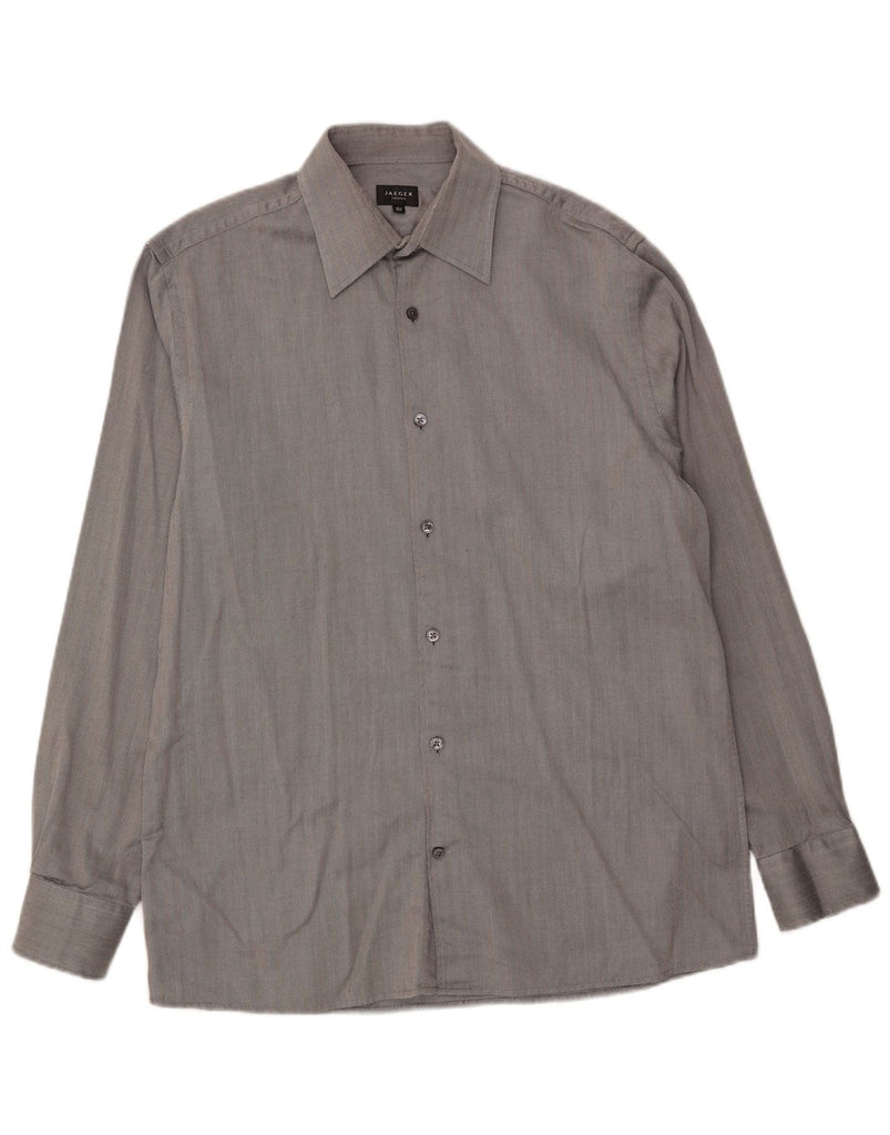 JAEGER Mens Tailored Shirt Size 15 1/2 Medium Grey Herringbone Cotton