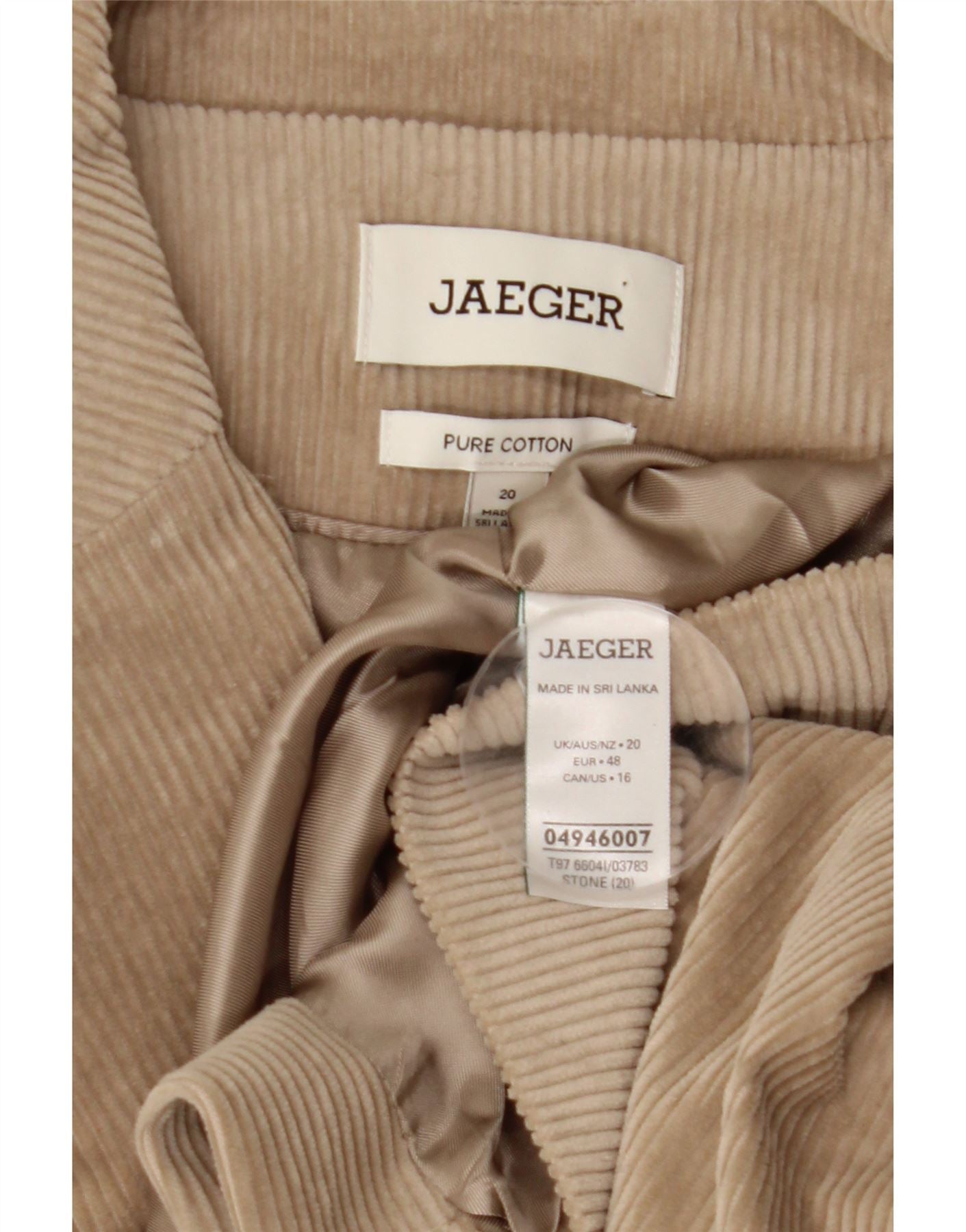 JAEGER Damska marynarka sztruksowa zapinana na 1 guzik UK 20 2XL Beżowa bawełna