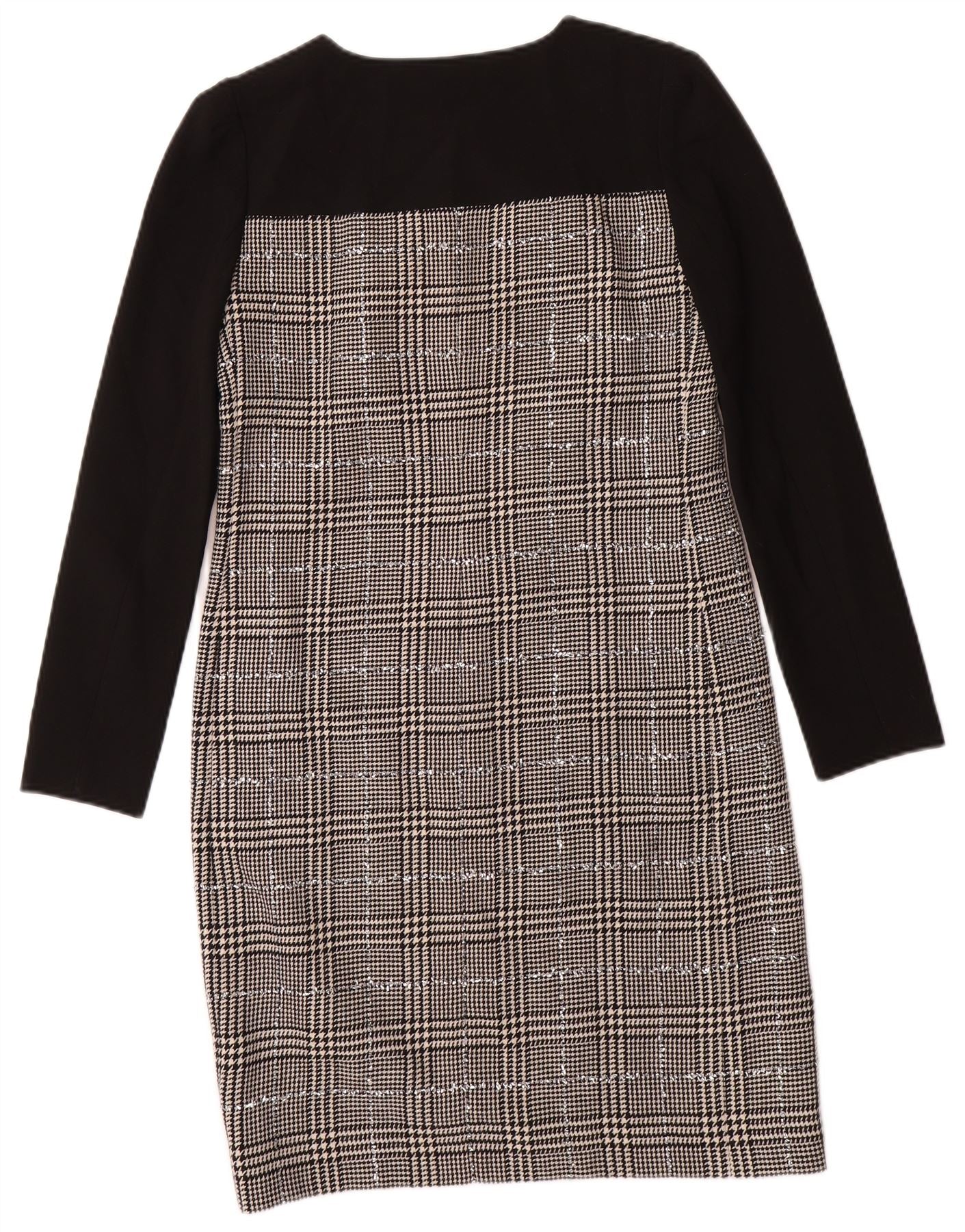 Damska sukienka płaszczowa z długim rękawem JAEGER UK 8, mała, czarna, wełniana w pepitkę